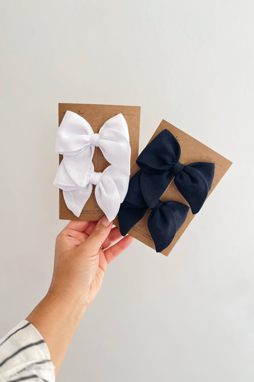 Fabricado a mano con dedicación y mucho cariño, este hermoso set de 2 lazos Sofy pequeño está confeccionado en su totalidad con algodón 100%, un material natural, suave y liviano que los hace perfectos para complementar todo tipo de looks, desde los más clásicos hasta los más relajados. Gracias a su diseño cómodo y versátil, estos lazos se adaptan fácilmente a distintos peinados, sujetándose con firmeza sin tirar ni dañar el cabello. Ideales para el uso diario o para ocasiones especiales.