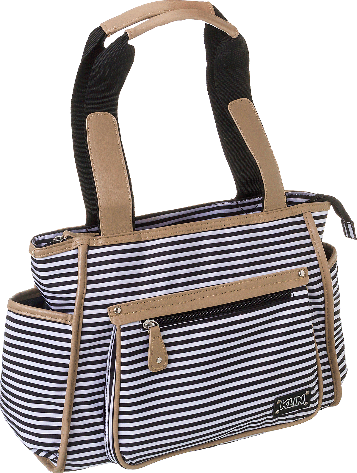El bolso maternal Klin es el compañero ideal para mamás que buscan practicidad sin perder el estilo. Su diseño elegante con estampado a rayas y detalles en tono camel lo hace versátil para cualquier ocasión. Cuenta con múltiples compartimentos y bolsillos exteriores, perfectos para organizar pañales, mamaderas, ropa y accesorios esenciales del bebé.