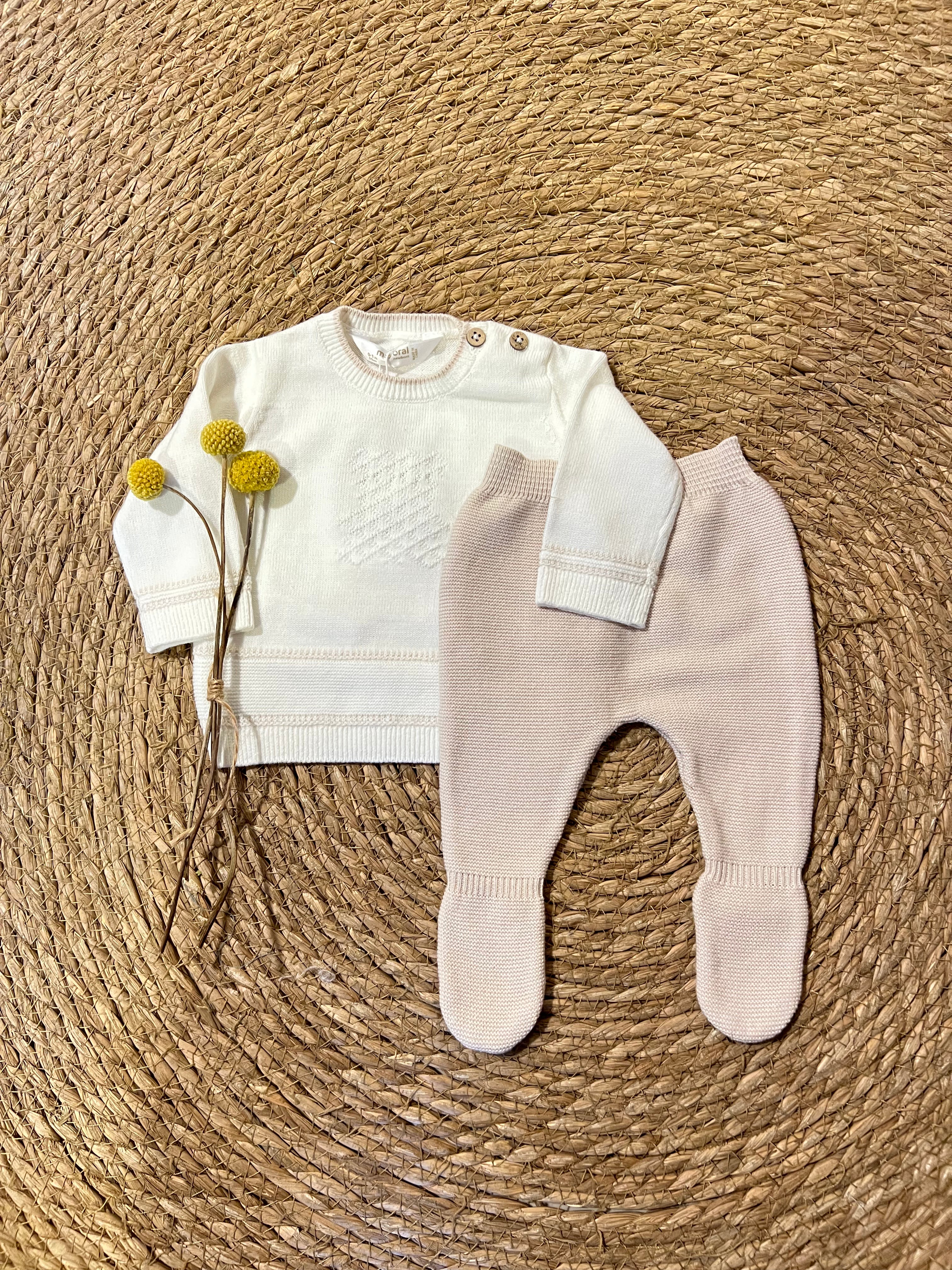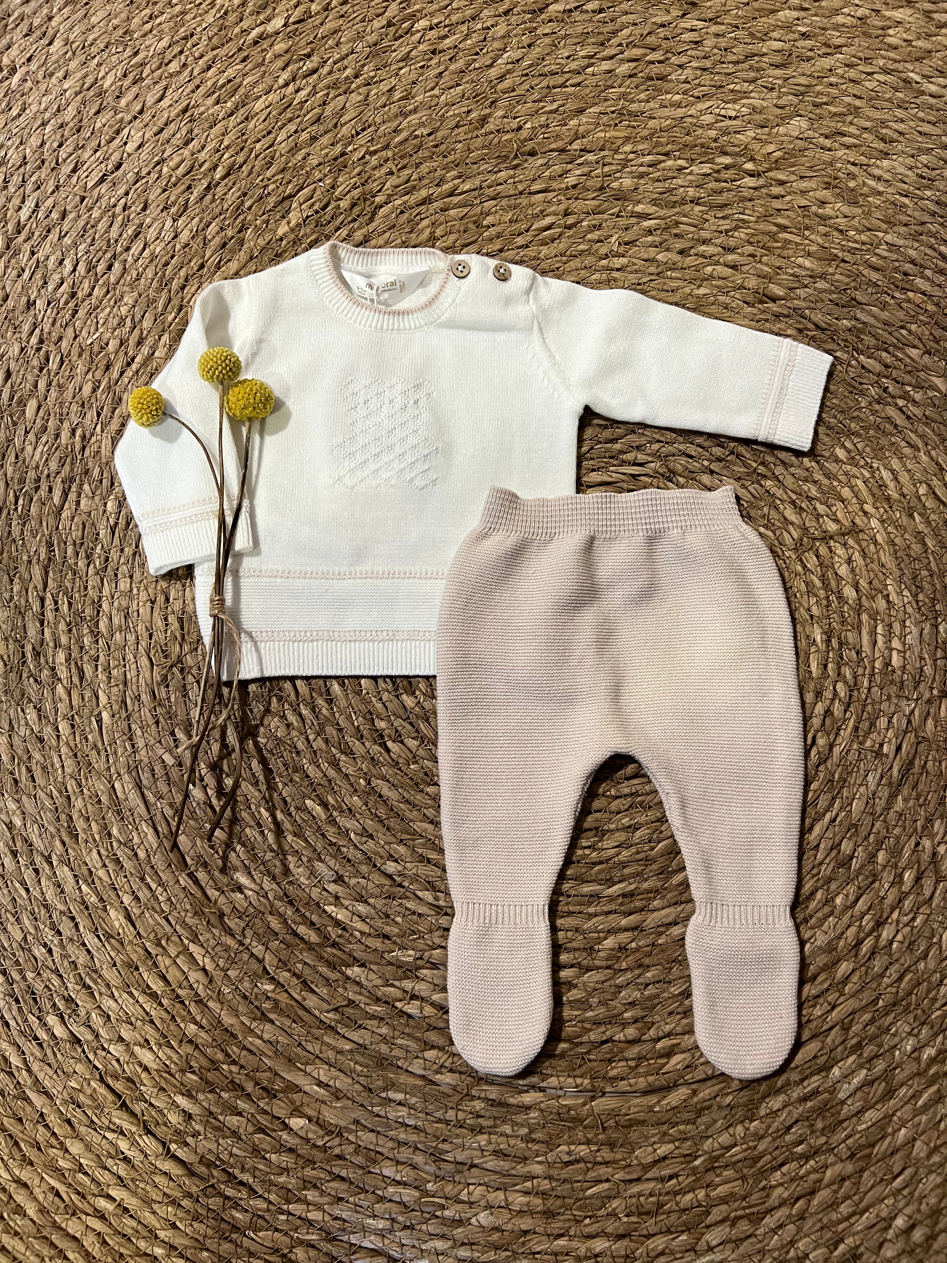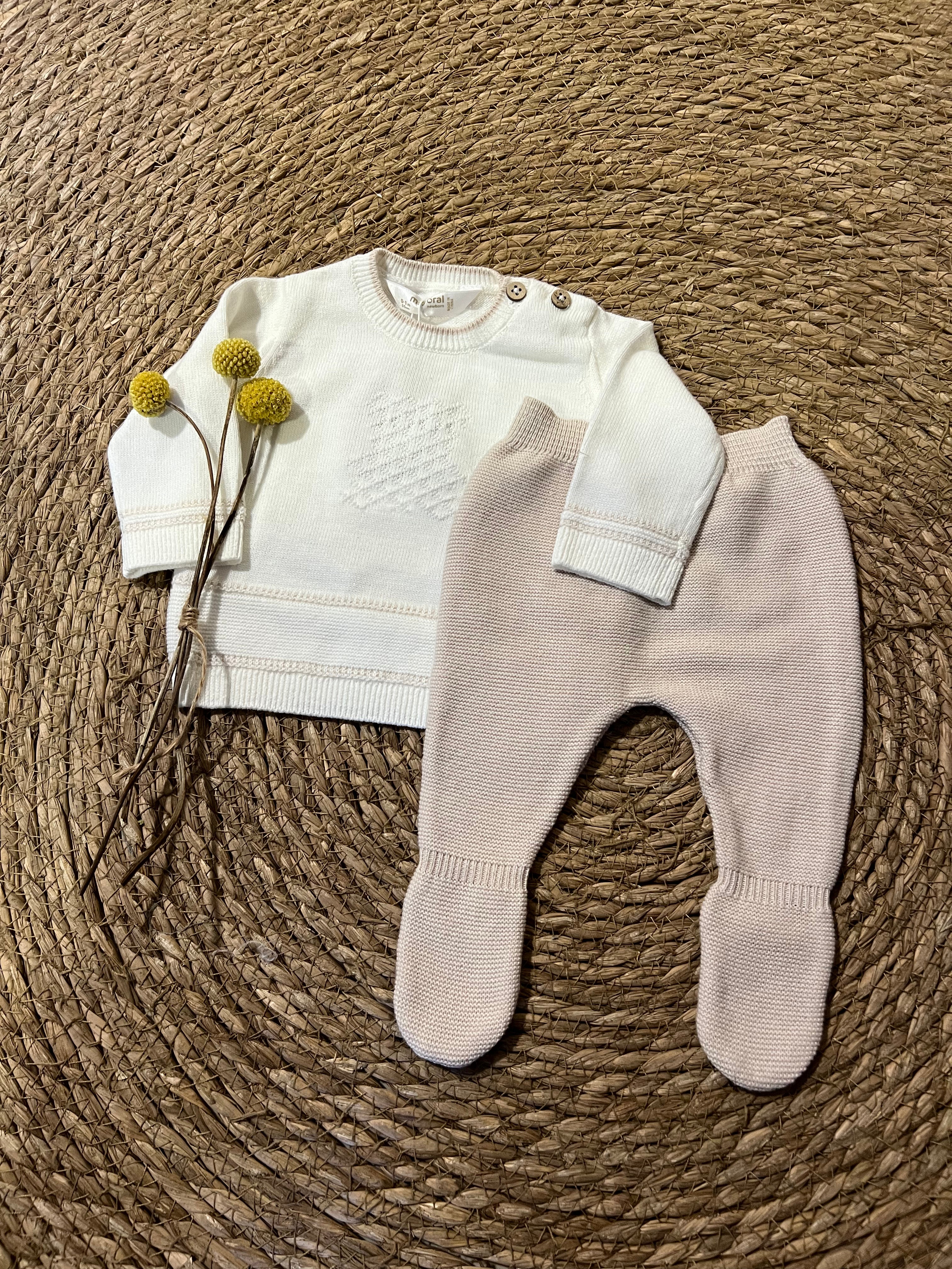 Conjunto New Born de Punto con Polaina – Beige