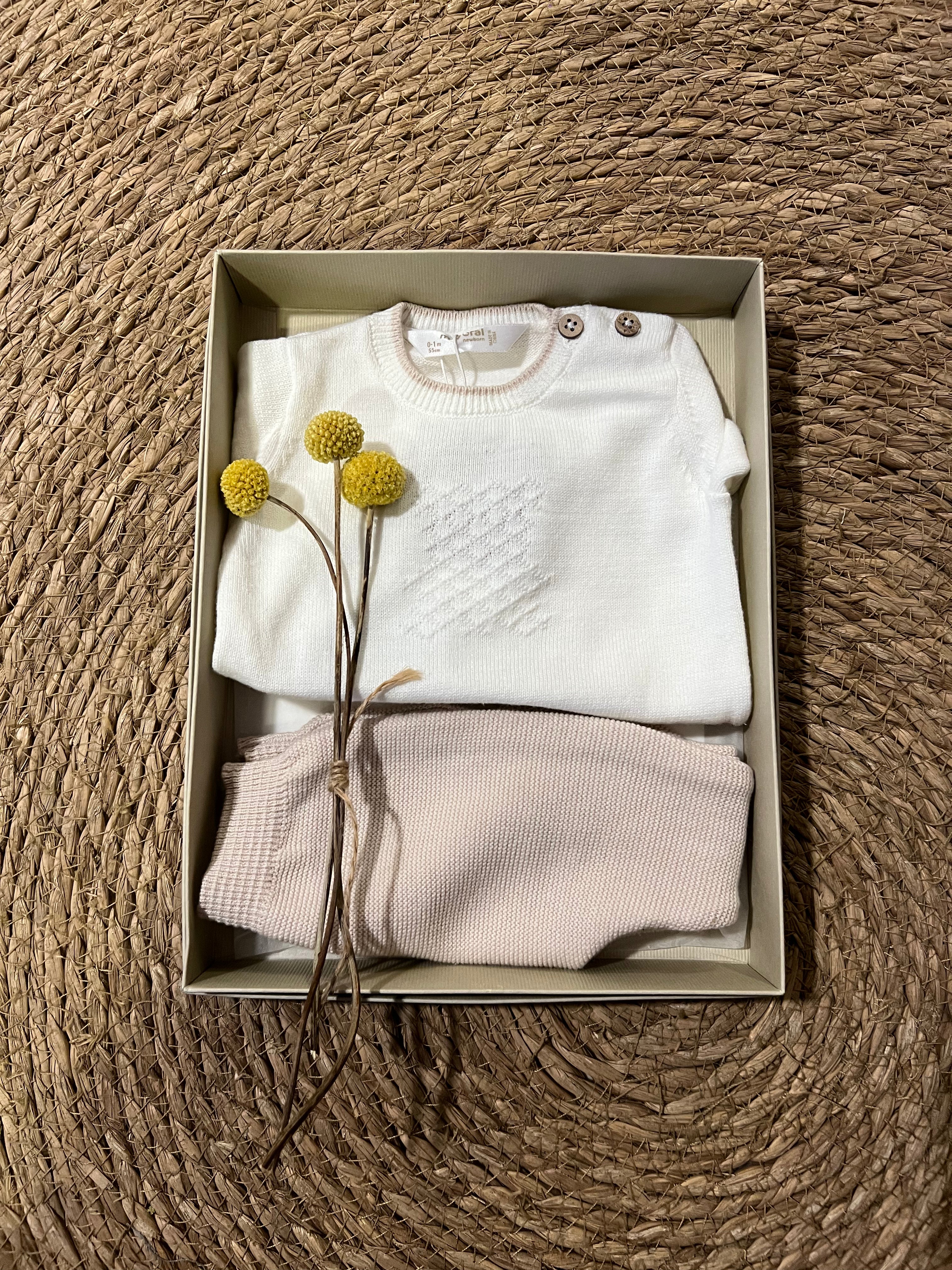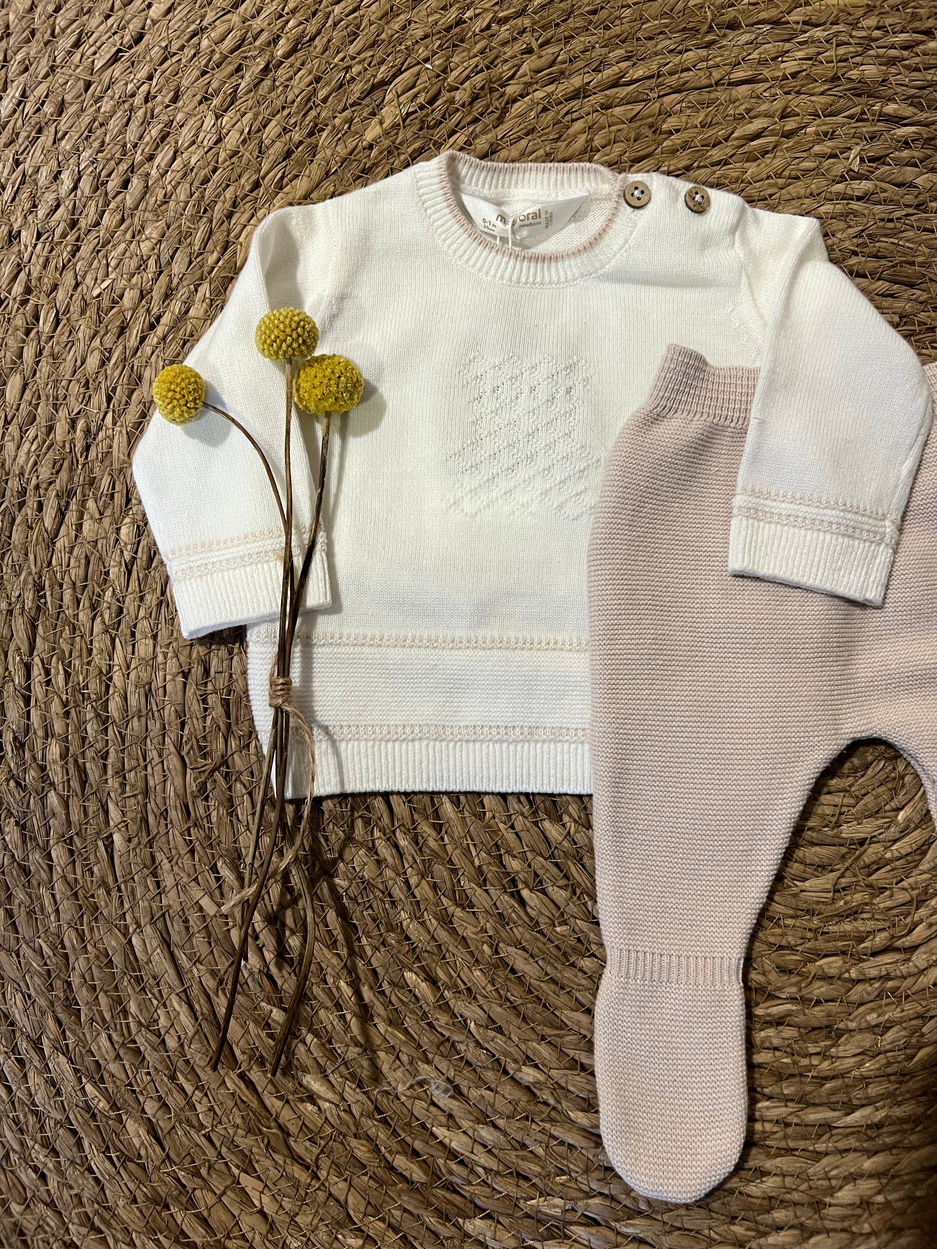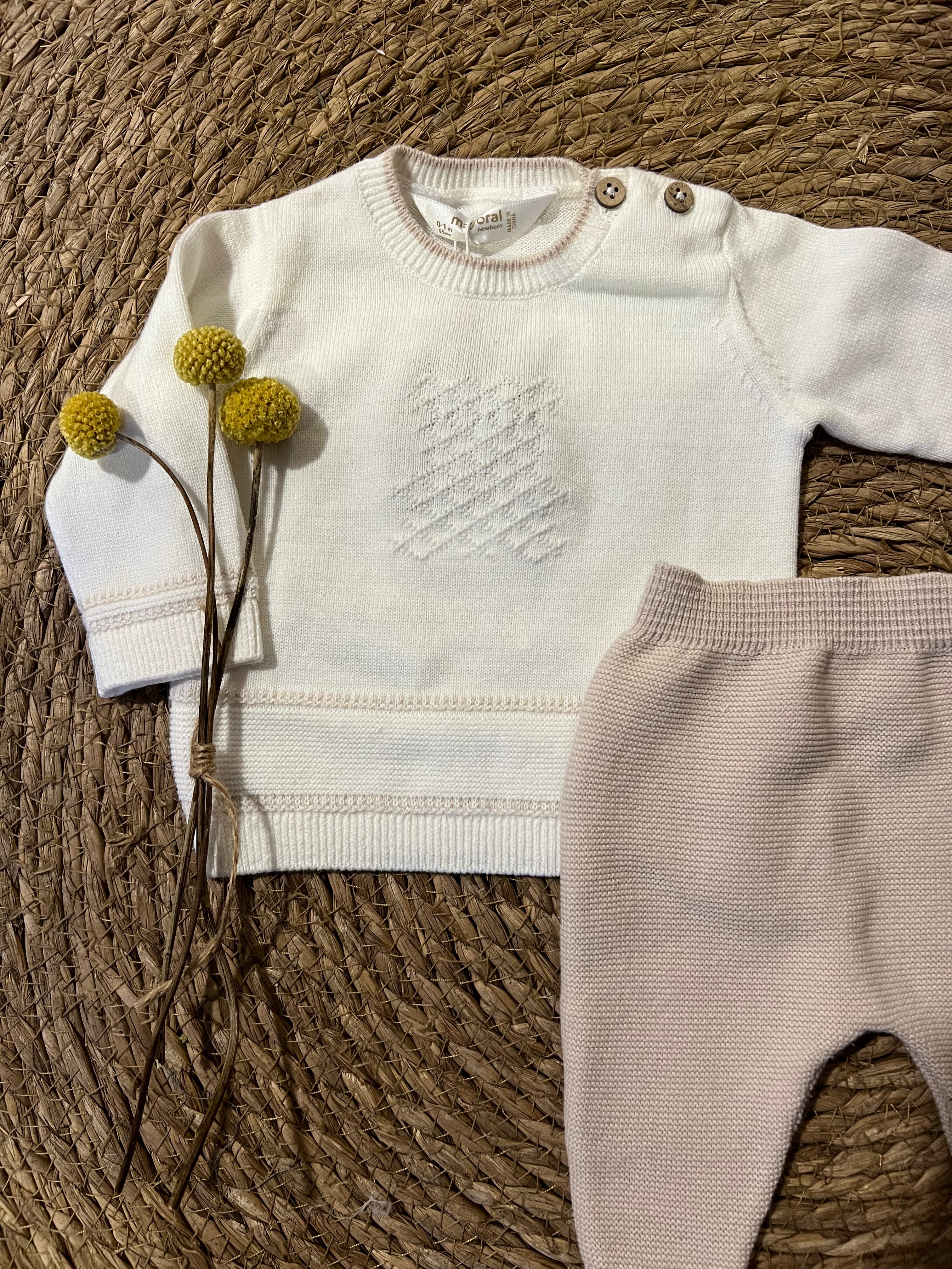 Conjunto New Born de Punto con Polaina – Beige