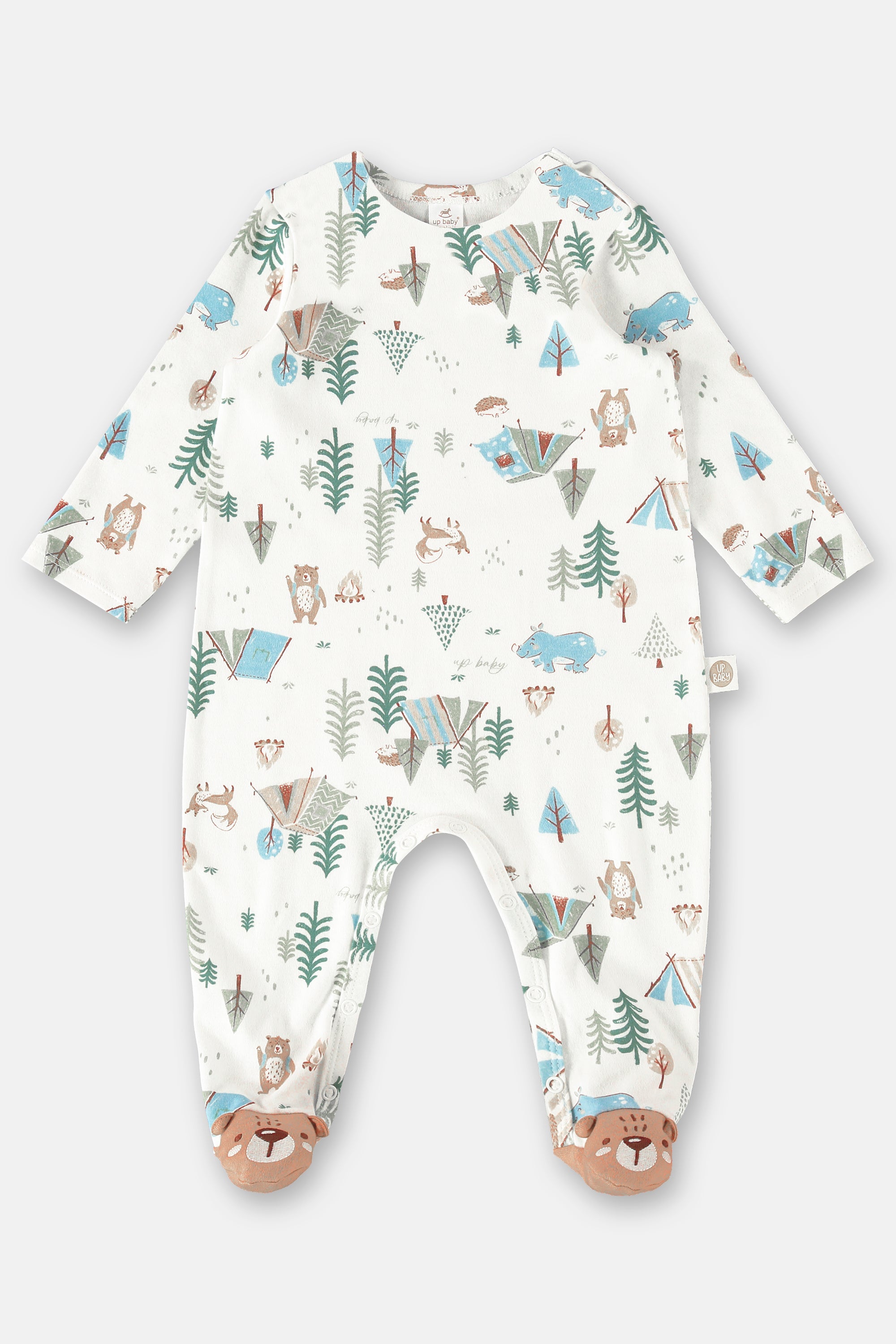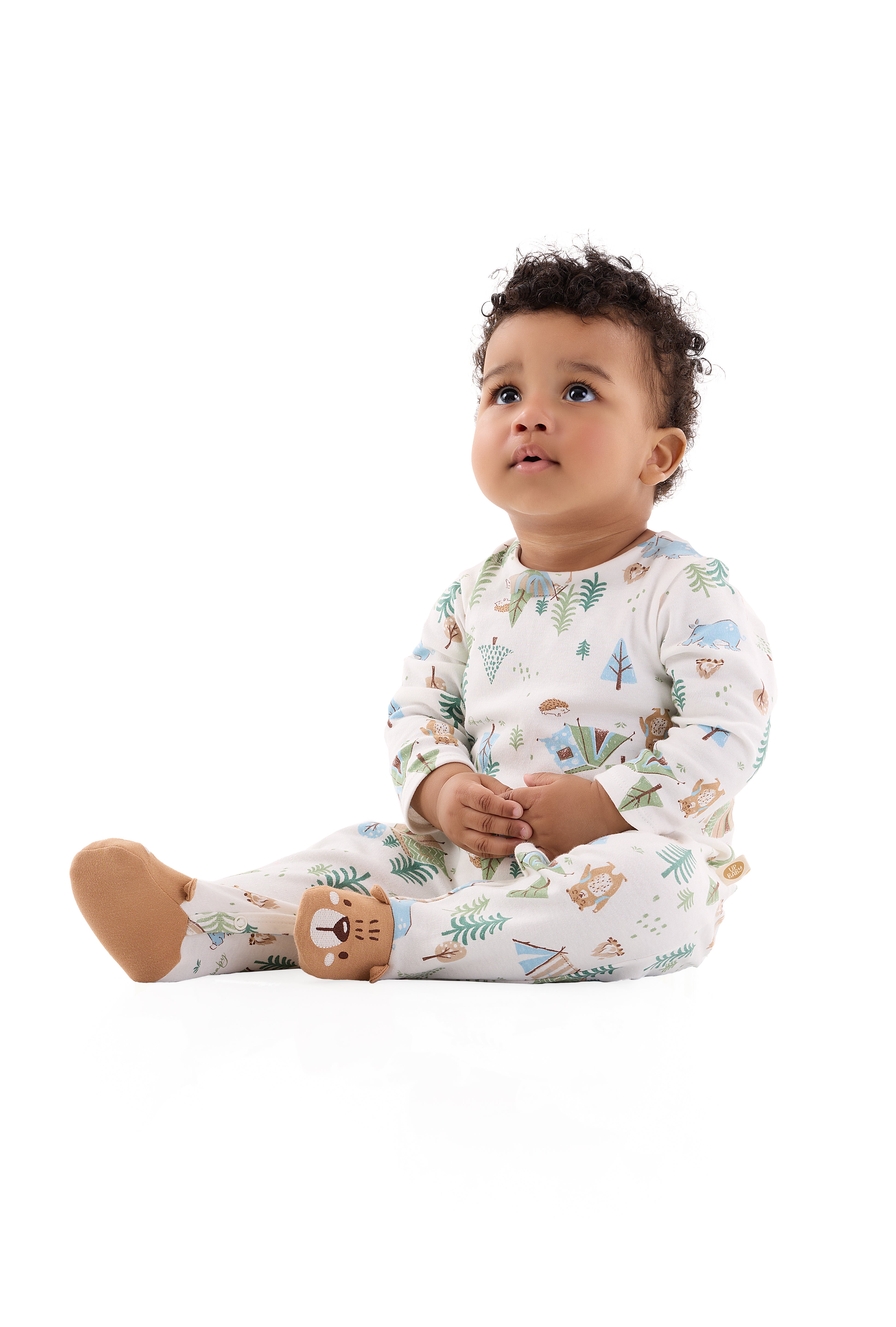 ¡Explora el mundo desde el primer día! Este enterito de recién nacido con estampado de bosque es una opción linda, cómoda y ultra suave. Fabricado en 100% algodón brasileño, es ideal para mantener a tu bebé abrigado y con total libertad de movimiento. Cierre frontal con cierre para mayor practicidad al vestir. Tierno, práctico y perfecto para regalar.