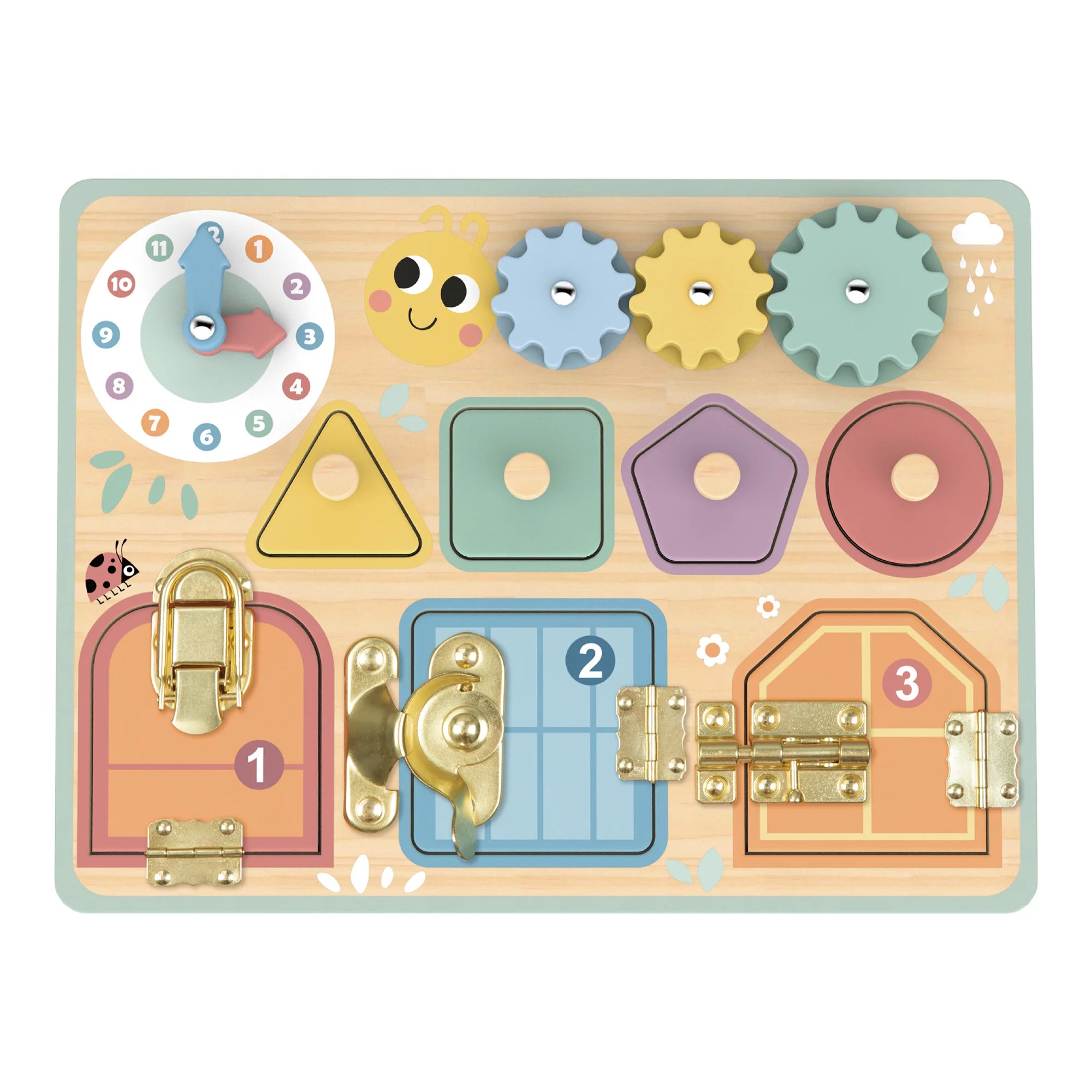Fabricado en madera de alta calidad, este busy board incorpora múltiples actividades interactivas como cerraduras, pestillos, engranajes giratorios, encajes de formas y puertas con mecanismos reales, que invitan a explorar, experimentar y aprender de manera autónoma. Cada elemento está pensado para fortalecer la motricidad fina, la coordinación mano-ojo, la concentración y las habilidades de resolución de problemas, fundamentales en la primera infancia.