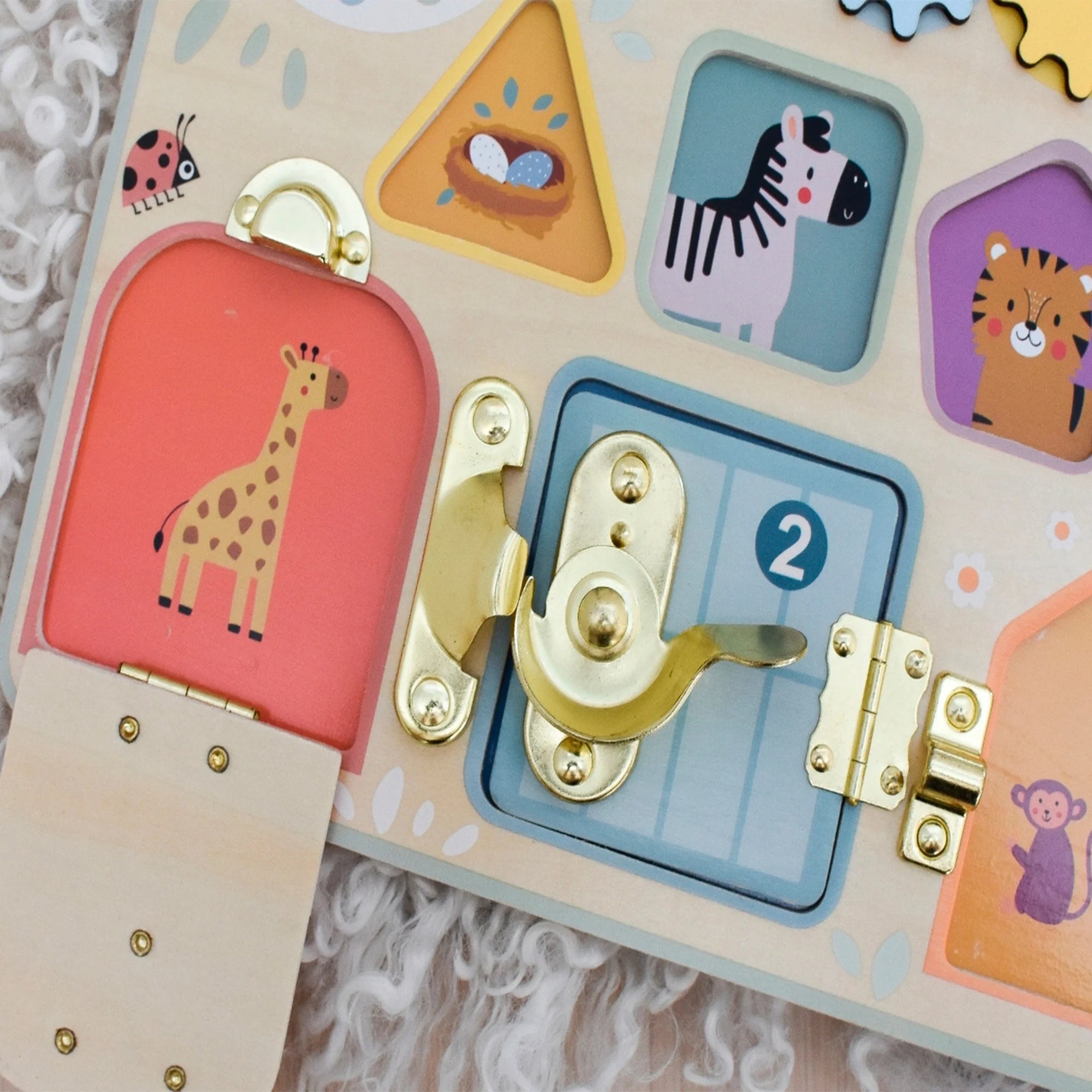 Este tablero de actividades es ideal para el juego independiente, el aprendizaje Montessori en casa y como primer material didáctico, fomentando la exploración libre y el desarrollo cognitivo desde edades tempranas.