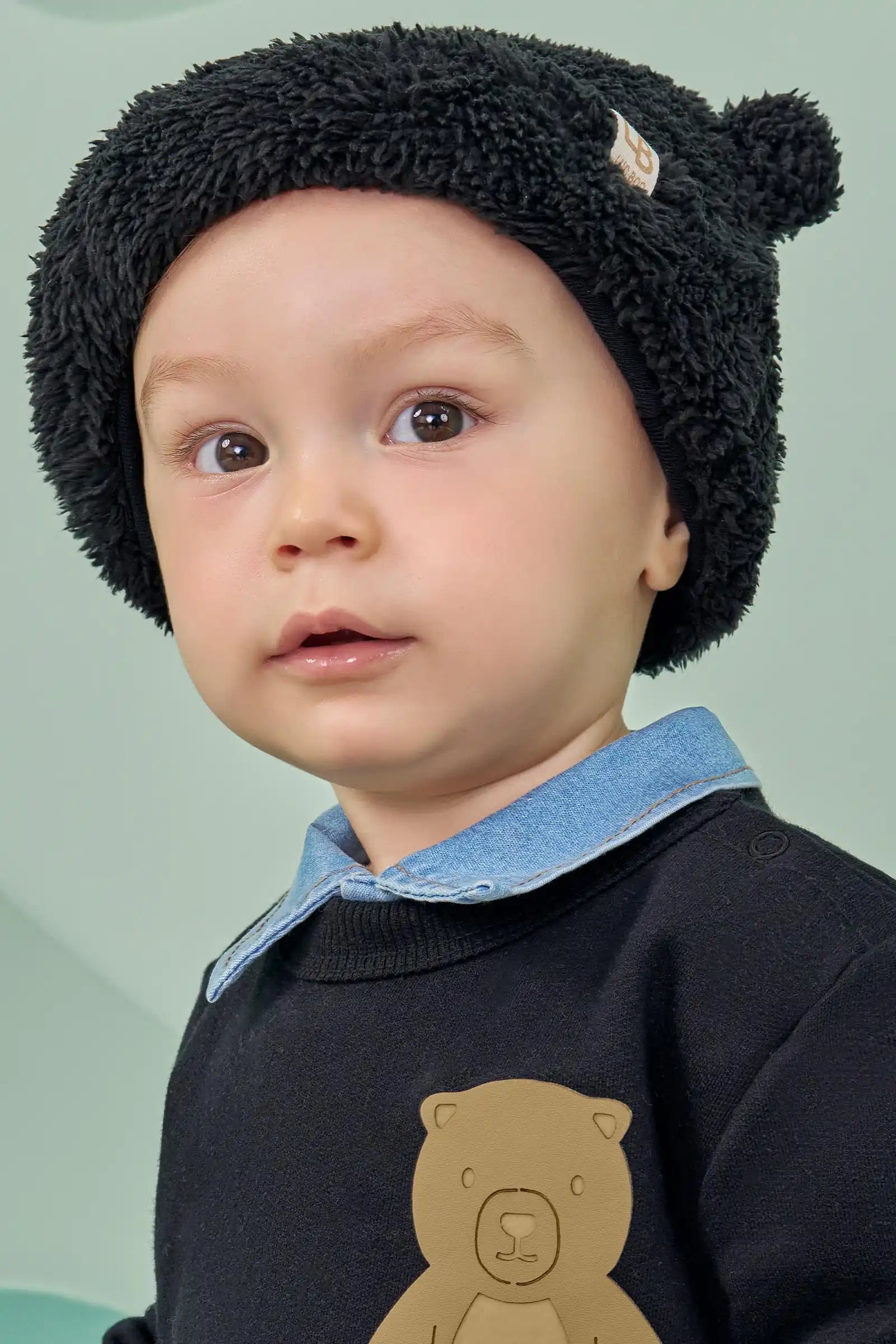 Este adorable gorro de peluche con orejitas de osito es el must del invierno. Su exterior suave y peludito lo hace irresistible, y su interior de algodón 98% garantiza máxima comodidad y respirabilidad para la piel sensible de tu peque. Abrigador, cómodo y con un diseño encantador, es ideal para mantener la cabeza protegida en días fríos sin perder estilo. Disponible en colores neutros, perfectos para combinar con cualquier outfit.