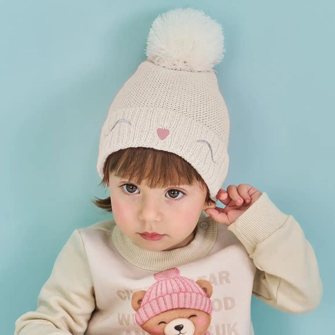 Gorrito tejido en tono crudo con textura suave y delicada, ideal para bebés y niñas pequeñas. Cuenta con una carita bordada y un tierno pompón en la parte superior, que lo convierte en el accesorio perfecto para los días fríos. Aporta abrigo y estilo, con calidad de confección brasileña y diseño encantador.