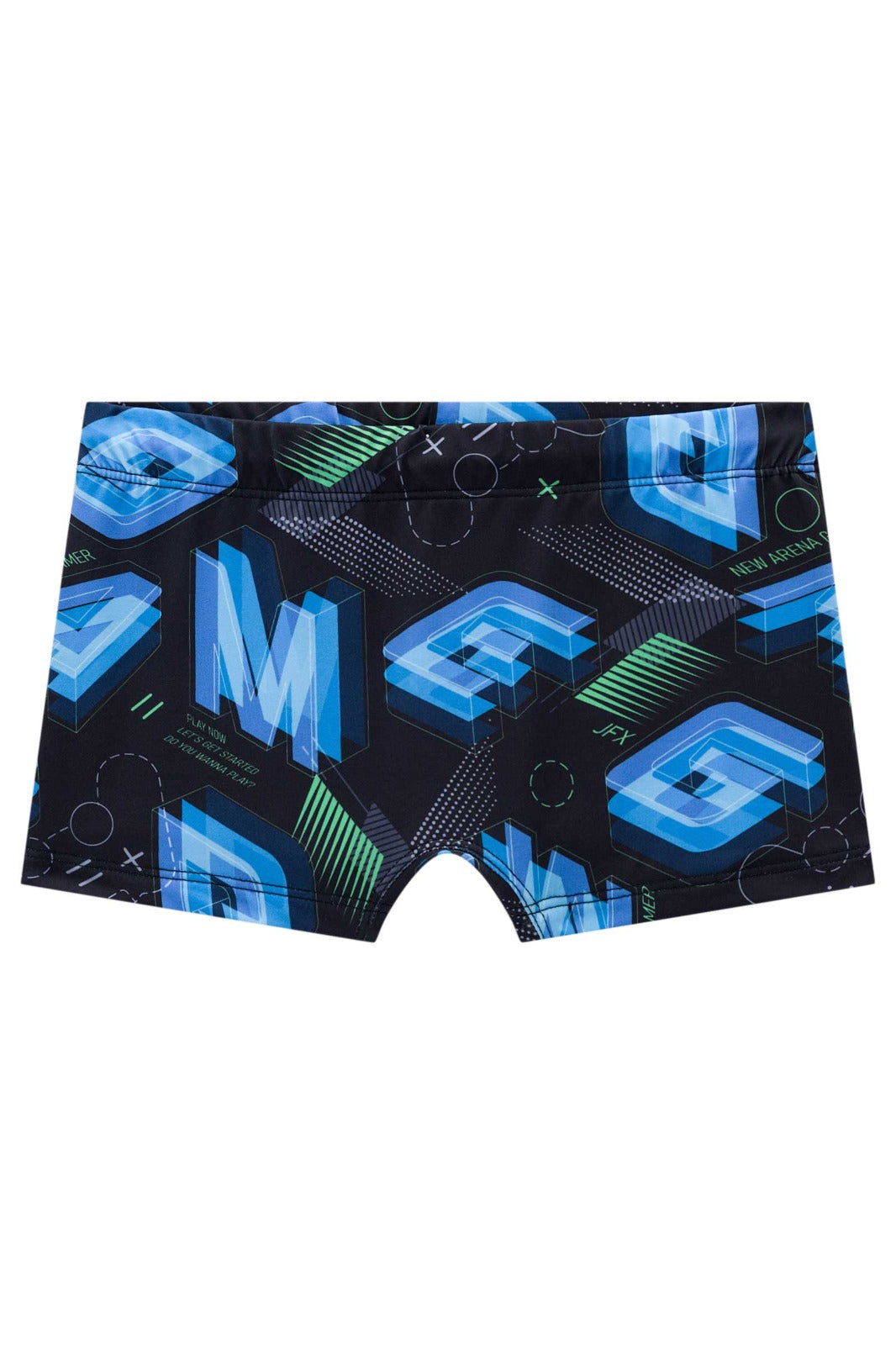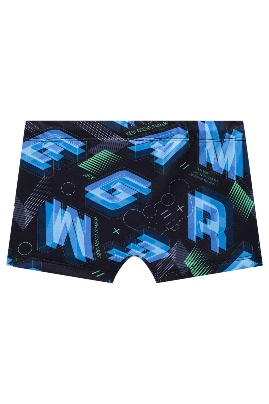 Sunga tipo boxer con diseño gamer 3D en tonos azules y verdes, ideal para los fanáticos de los videojuegos. Confeccionada en Brasil con materiales de alta calidad, ofrece ajuste cómodo y protección UV50, perfecta para días de piscina o playa. Estilo y tecnología en una sola prenda.