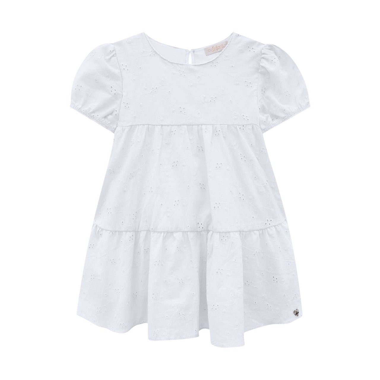 Hermoso conjunto blanco de 3 piezas para bebé niña, que incluye un delicado vestido bordado, calzón a juego y cintillo con moño. Ideal para ocasiones especiales. Confeccionado en Brasil con materiales suaves, cómodos y de alta calidad. Un outfit completo, elegante y versátil.