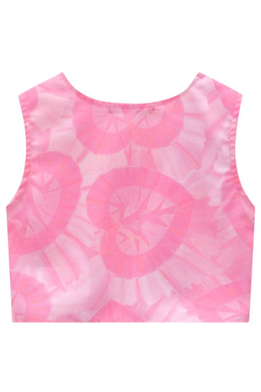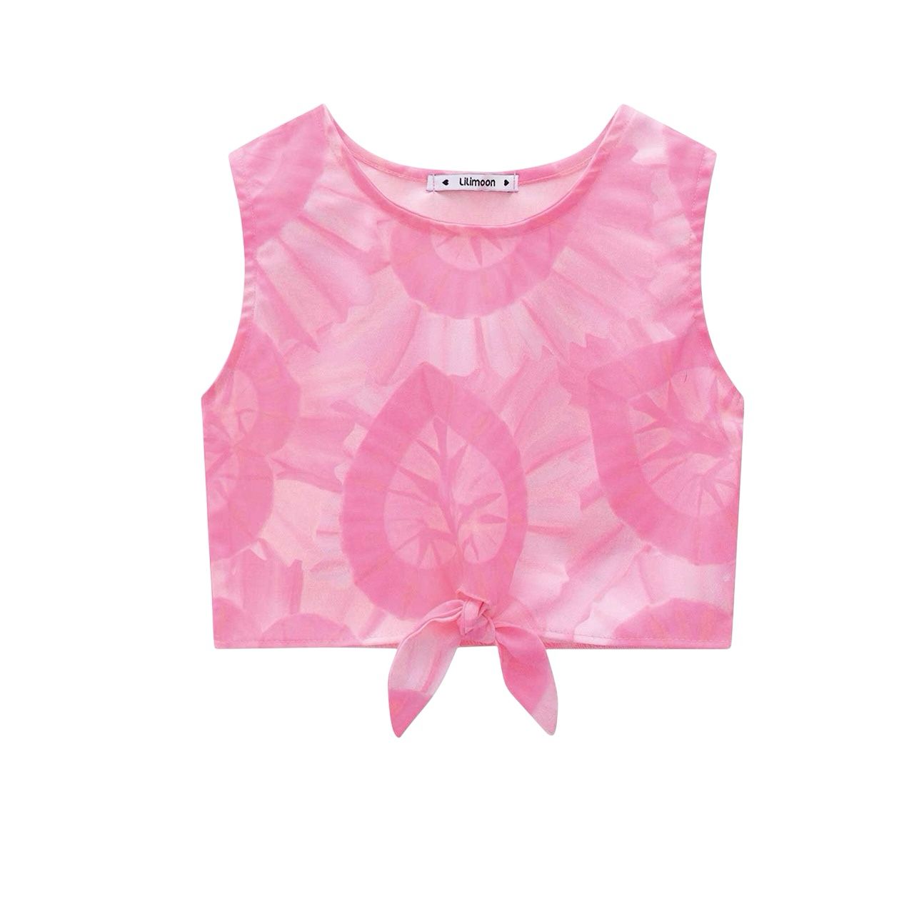 Top veraniego para niñas de la marca Lilimoon, con un hermoso estampado floral en tonos rosados y detalle anudado al frente. Su confección en tela liviana y fresca lo hace ideal para los días de calor. El diseño sin mangas y su estilo moderno lo convierten en una prenda versátil para combinar con shorts, faldas o jeans. Fabricado en Brasil con materiales de alta calidad, suave al tacto y cómodo para todo el día.