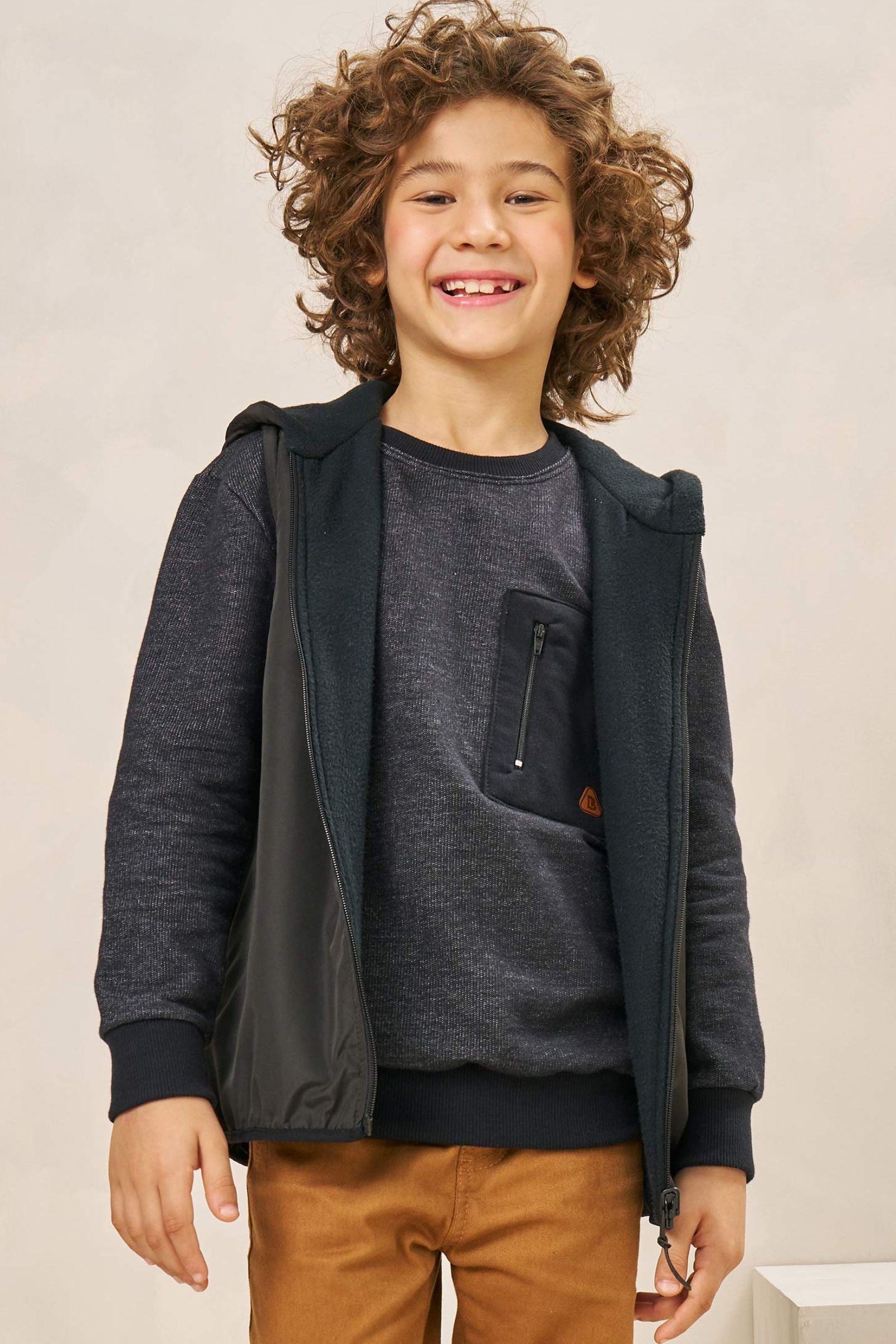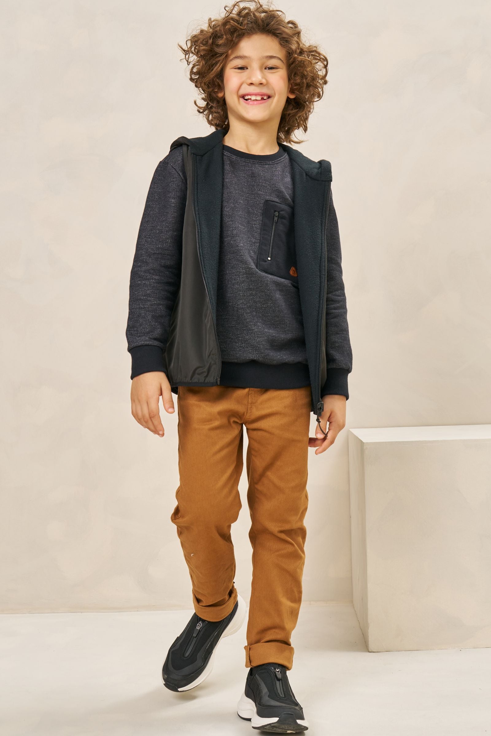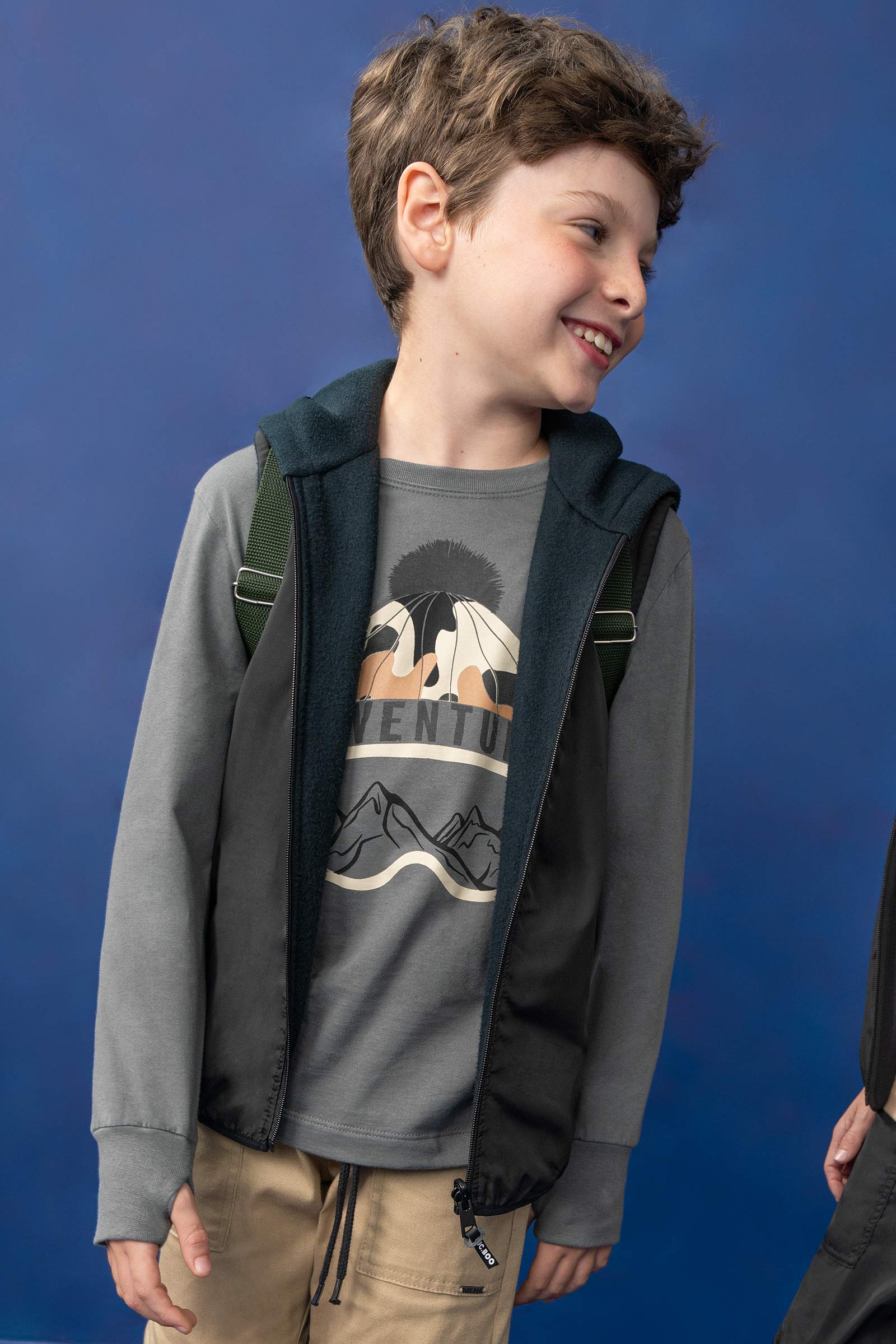 Esta chaqueta sin mangas con interior polar es la aliada perfecta para los días frescos y las aventuras al aire libre. Fabricada con materiales brasileños de alta calidad, combina un exterior cortaviento con un interior de polar cálido y suave, ideal para mantener la comodidad en cualquier clima. Su diseño unisex moderno y práctico, con cierre frontal y gorro, la hace versátil y fácil de combinar. Una prenda realmente esencial para niños y súper práctica. Si buscas estilo y funcionalidad esta chaqueta es!