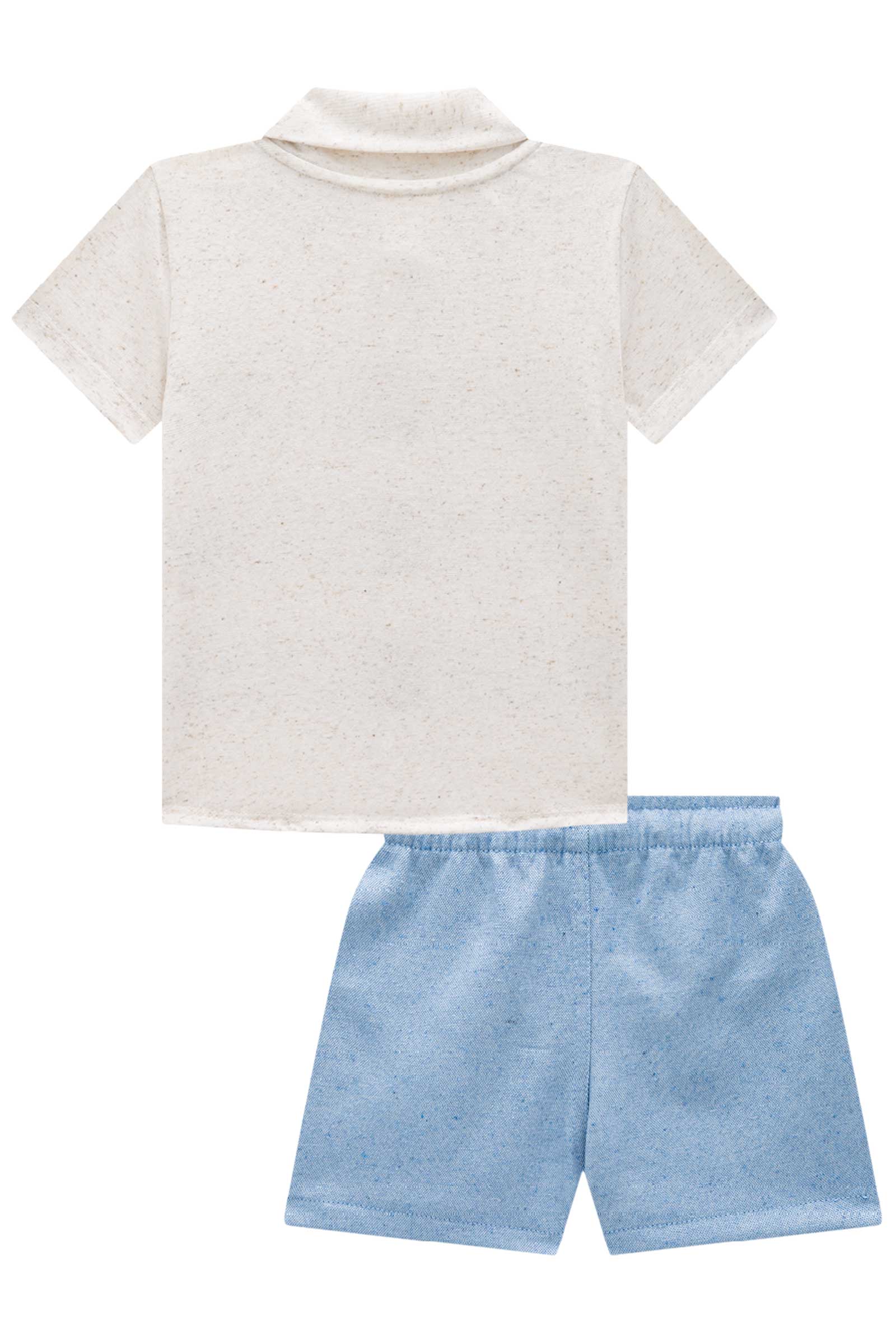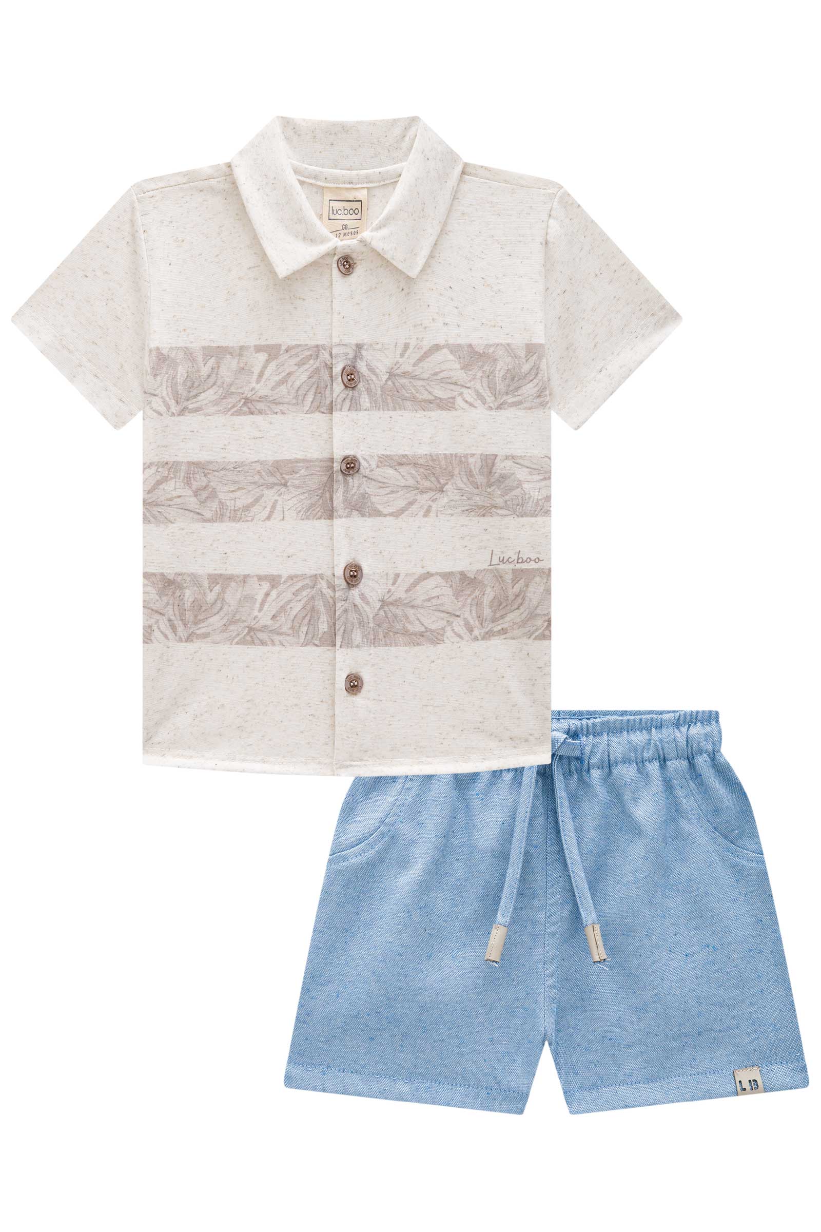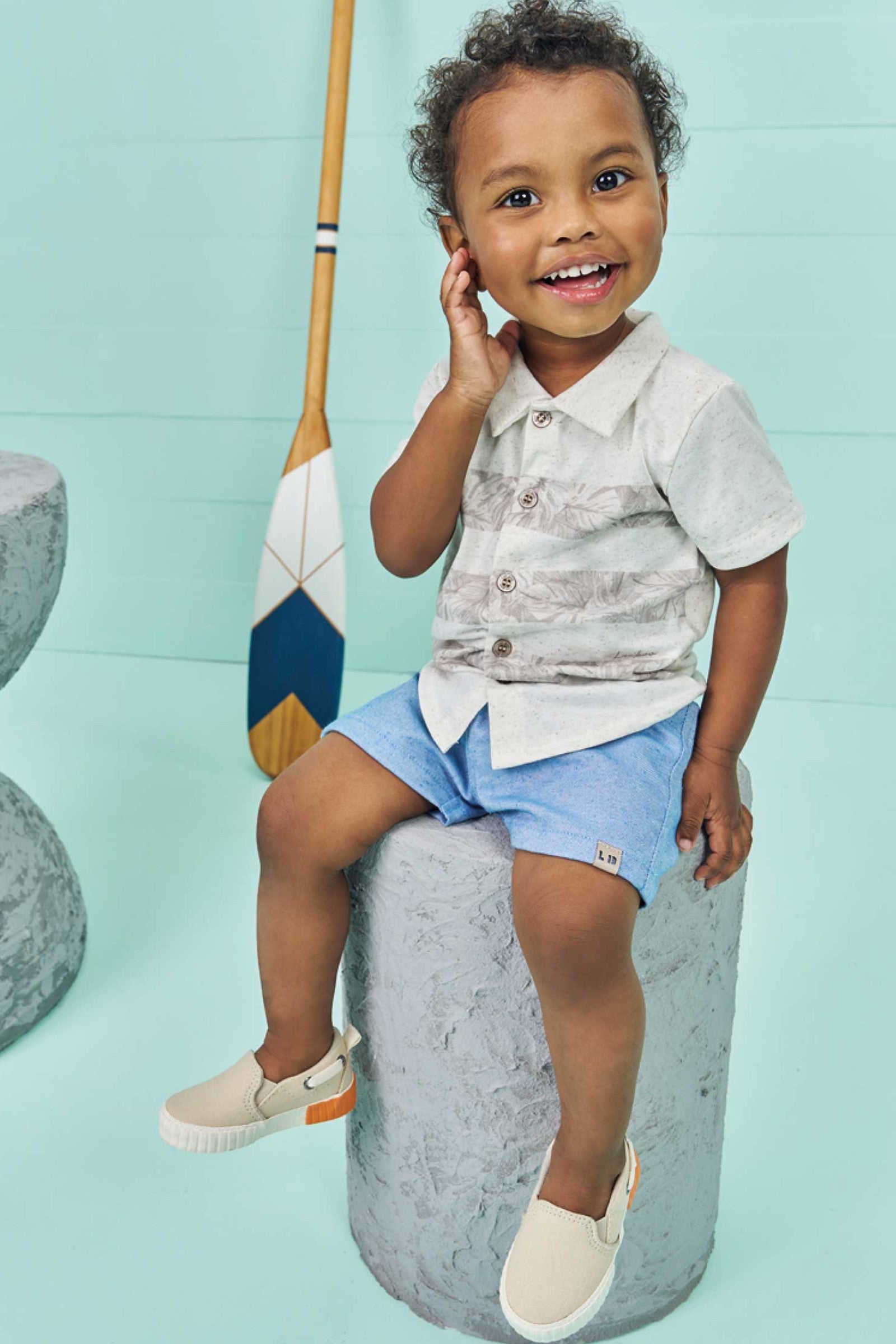 Conjunto para niño compuesto por una camisa de cuello pique con diseño tropical estilo Hawai y un cómodo versátil short en tono azul claro. Perfecto para un look veraniego, ideal para paseos y ocasiones especiales. Disponible en tallas de 1 a 3 años, ofreciendo frescura y estilo para los más pequeños