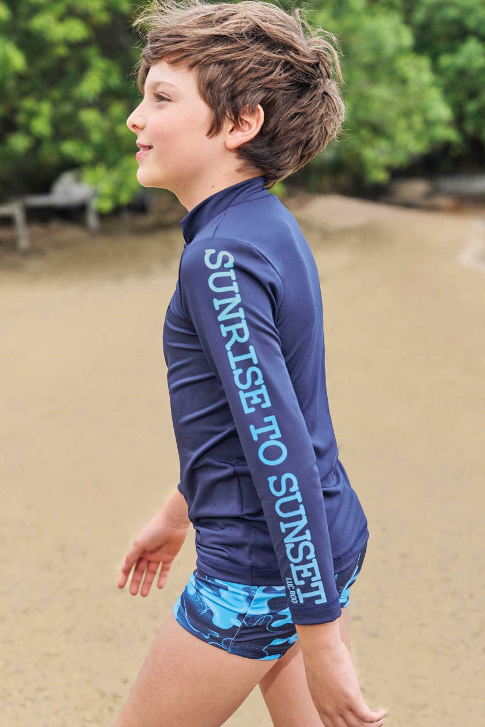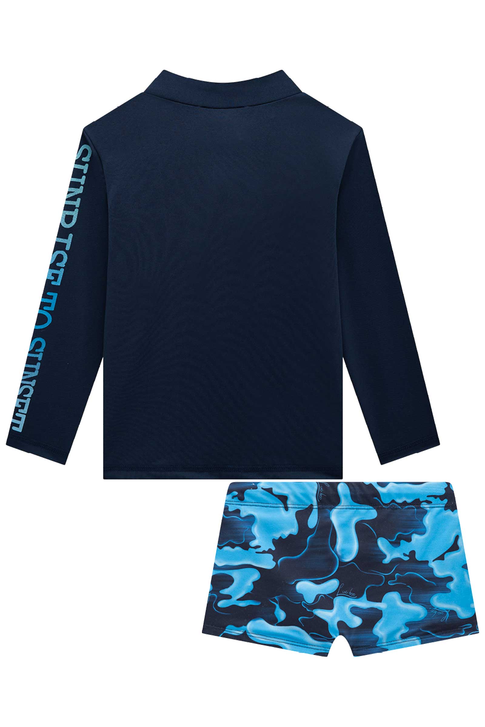 Conjunto para niño con filtro UV 50+, ideal para proteger la piel mientras se exponen al sol. Con un diseño moderno y cómodo, este conjunto es perfecto para actividades al aire libre como la playa o la piscina. Incluye una camiseta de manga larga con un pequeño cierre frontal y un short con estampado vibrante, brindando protección solar y estilo. Confeccionado en Brasil con materiales de alta calidad, este conjunto está disponible desde la talla 2 hasta 14 años, ofreciendo confort y seguridad en cada uso.
