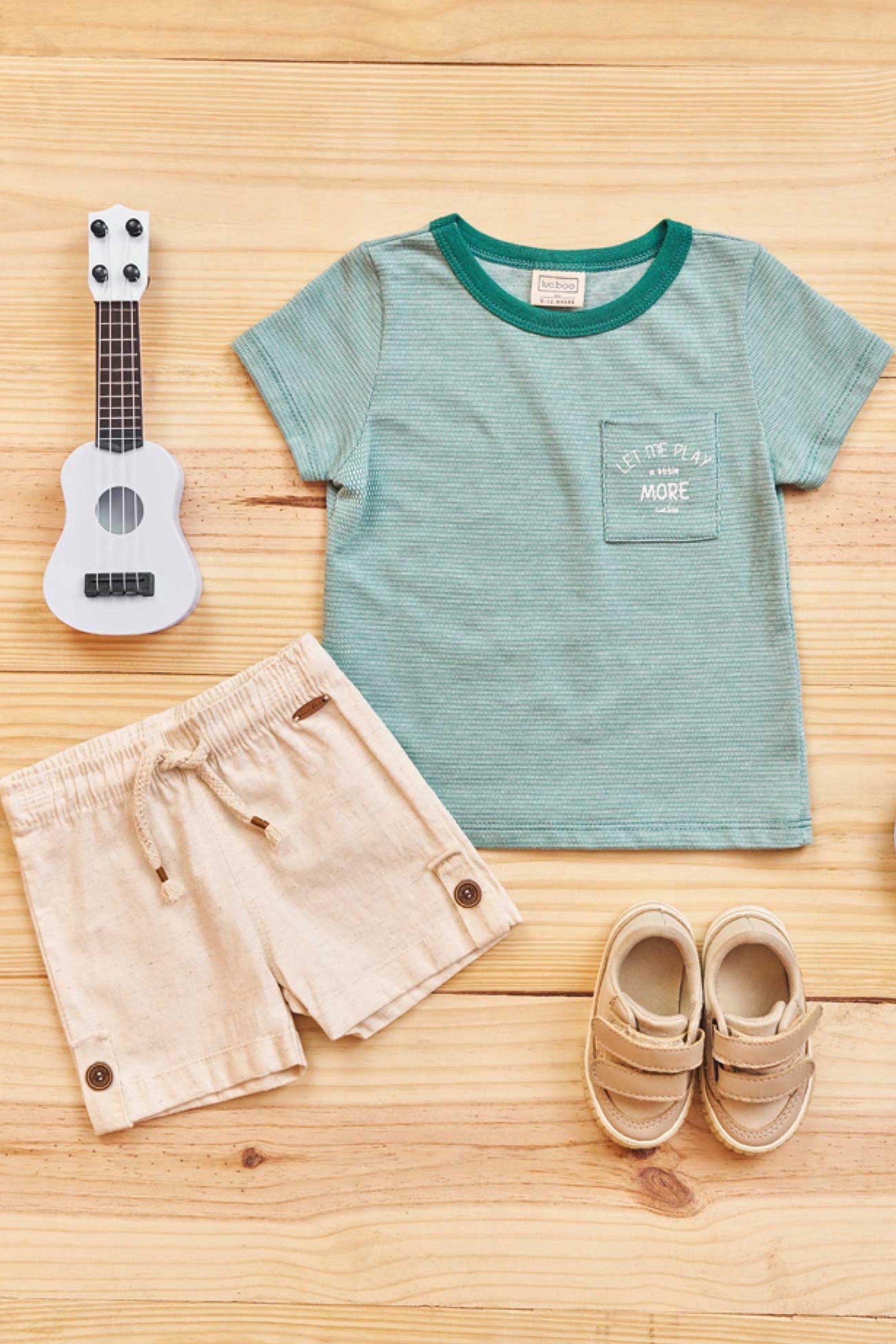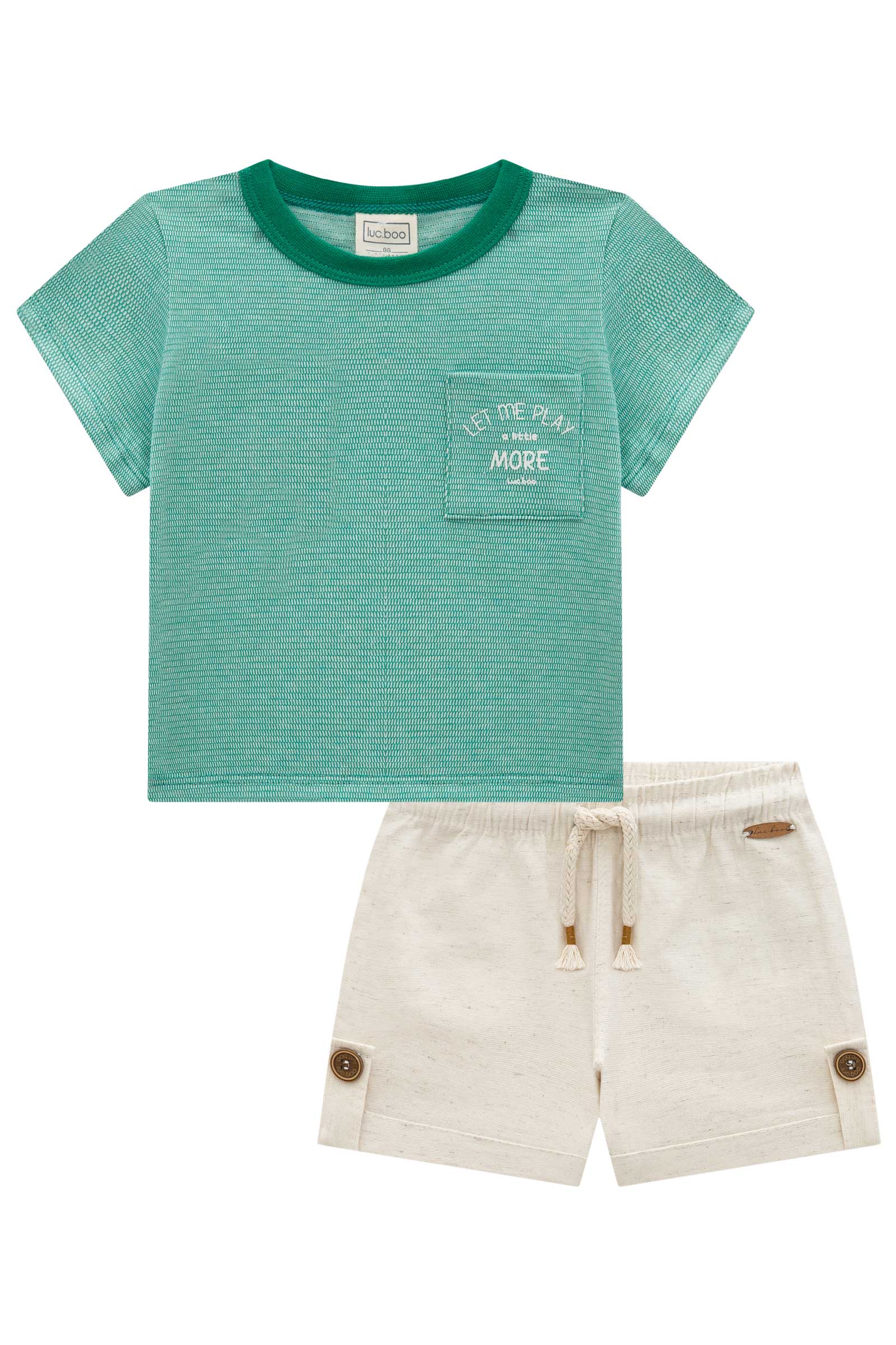 Este conjunto de niño combina estilo y comodidad en una polera y un short de calidad superior. La polera en tono verde con estampado "Let Me Play More" refleja el espíritu aventurero y libre de los más pequeños, mientras que el short de tela suave y transpirable garantiza frescura en cada movimiento. Confeccionado en Brasil con materiales duraderos y un diseño pensado para la vida activa de los niños, este conjunto es ideal para el día a día. Perfecto para padres que buscan prendas resistentes y cómodas sin sacrificar el estilo.