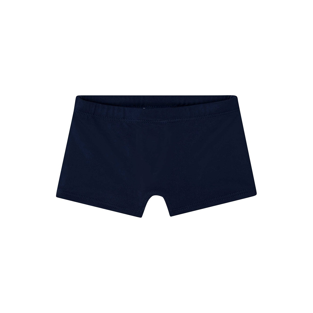 Conjunto de polera y sunga con filtro UV50+ de la marca brasileña LucBoo, ideal para proteger la piel de los rayos solares. Con diseño de rayas horizontales azul marino y blanco, y mangas largas en azul oscuro, es perfecta para días de playa o piscina. Confeccionada en tela ligera, cómoda y de secado rápido, esta prenda combina estilo náutico y protección solar para niños activos.