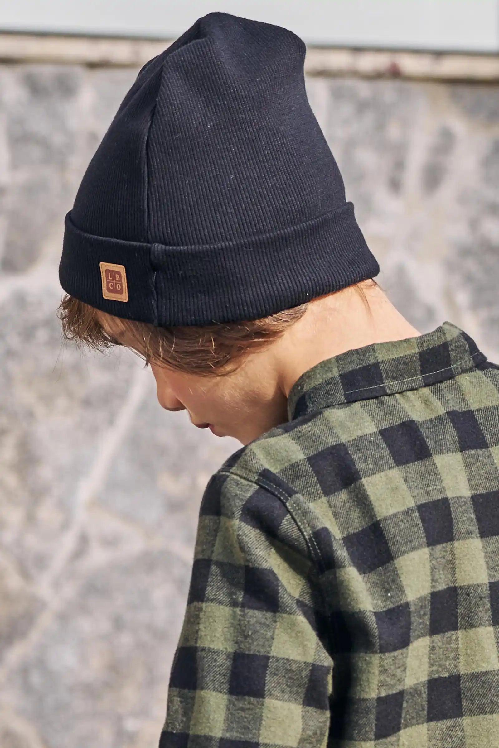 Este gorro es un básico infaltable para la temporada otoño-invierno. Confeccionado en algodón suave y elástico, ofrece un ajuste cómodo y una excelente retención del calor. Su diseño moderno con doblez y parche en eco cuero combina estilo y funcionalidad. Disponible en tres colores neutros camel, azul marino y gris, que combinan con todo. Ideal para niños que les gusta las aventuras al aire libre.