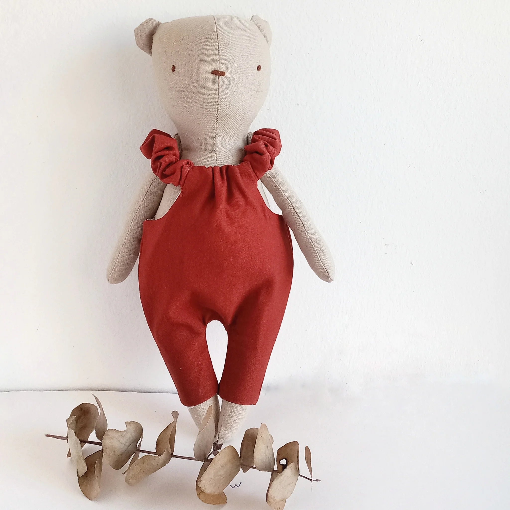 Confeccionado con materiales nobles , hecho a mano (bordados, costuras y terminaciones con mucho detalle) y un mix de materiales en su ropita. Nuestro amigo Osito del bosque ha llegado para acompañarte.