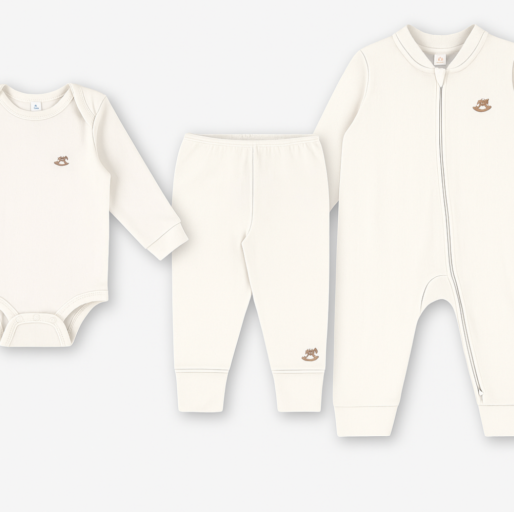 Ajuar Bebé 100% Algodón Crema– Body, Panties y Enterito