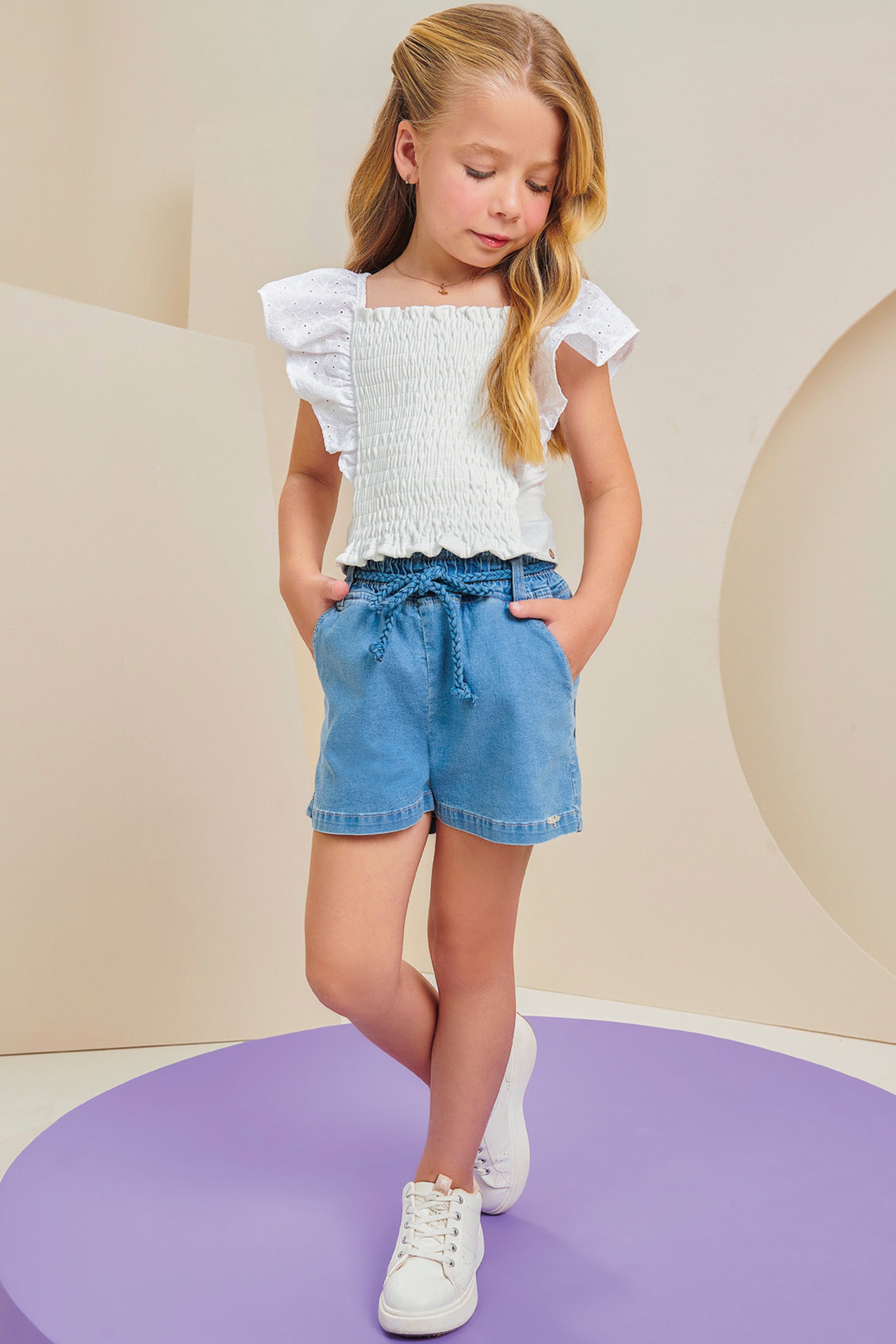 Short de mezclilla para niñas, diseñado con un estilo moderno y versátil. Incluye un cinturón trenzado que añade un toque único y ajustable para mayor comodidad. Confeccionado en tela de alta calidad y durabilidad, perfecto para combinar con cualquier outfit de verano. Ideal para niñas activas y estilosas. Disponible en varias tallas.