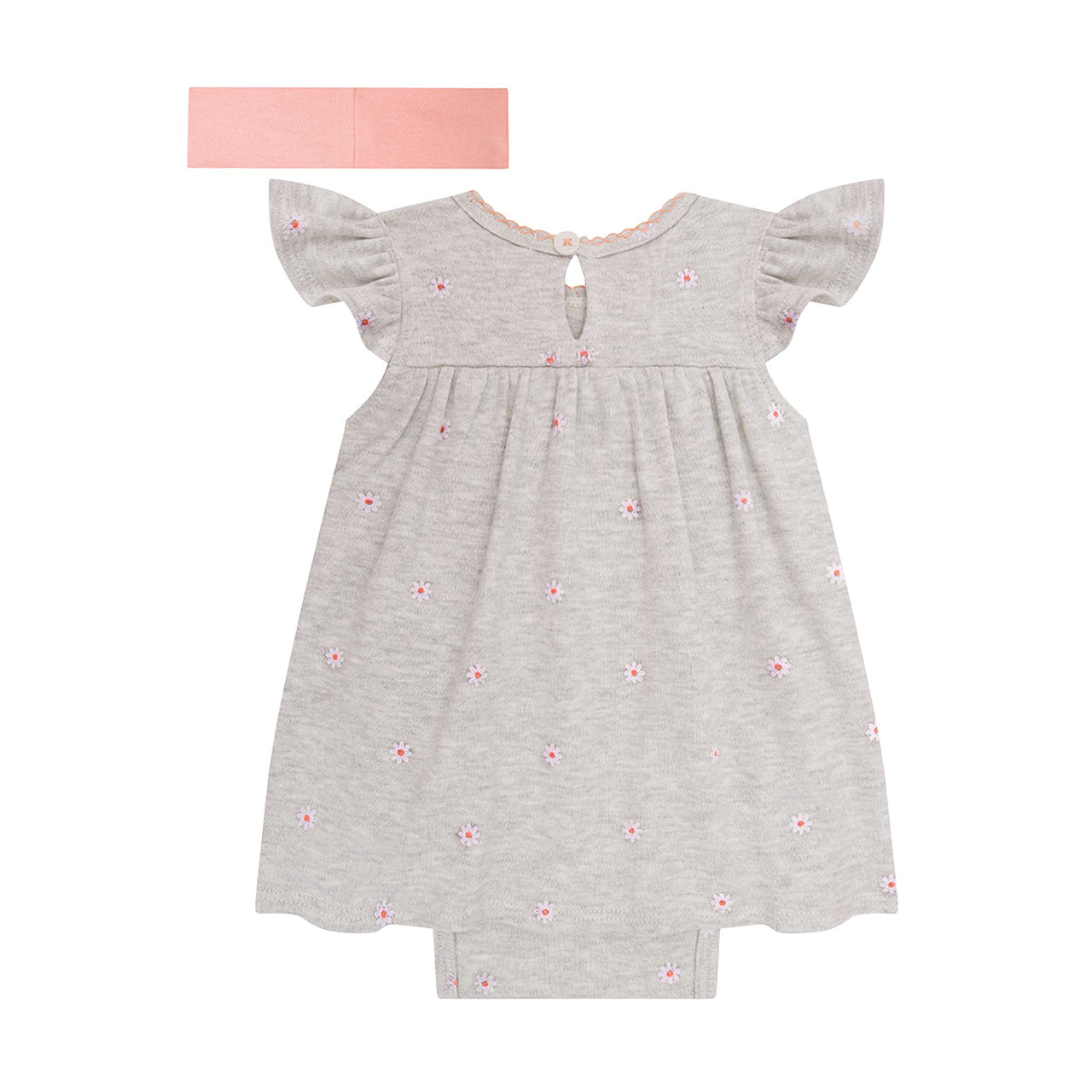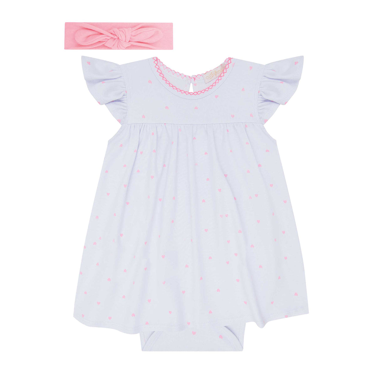 Vestido body estampado, confeccionado en algodón brasileño de alta calidad. Incluye un cintillo a juego para completar un look delicado y adorable. Perfecto para la comodidad diaria de la guagua.