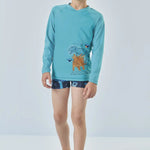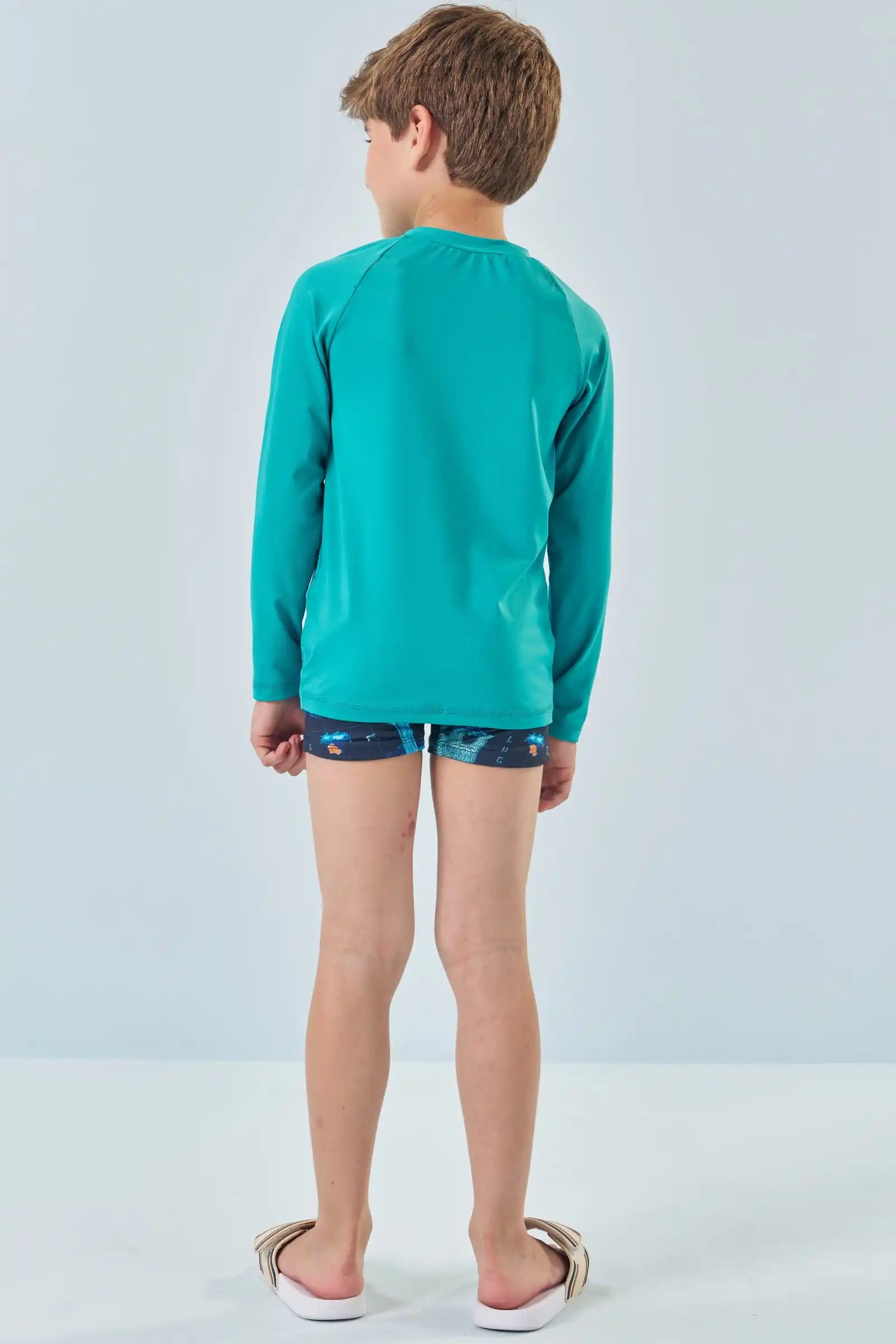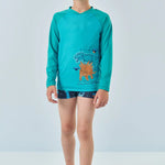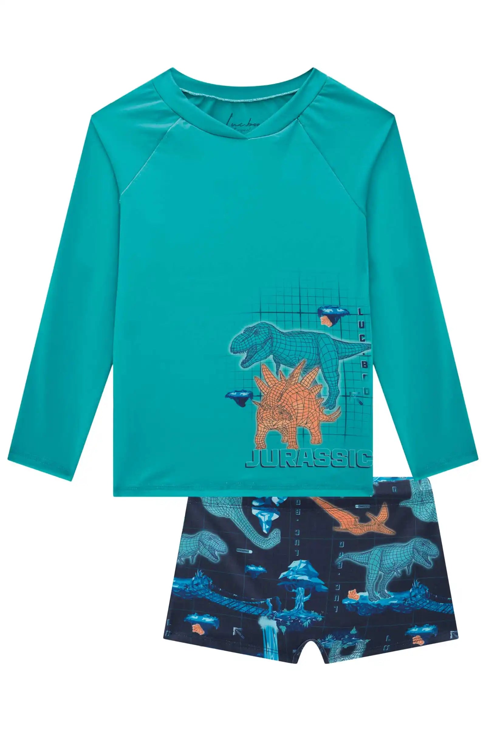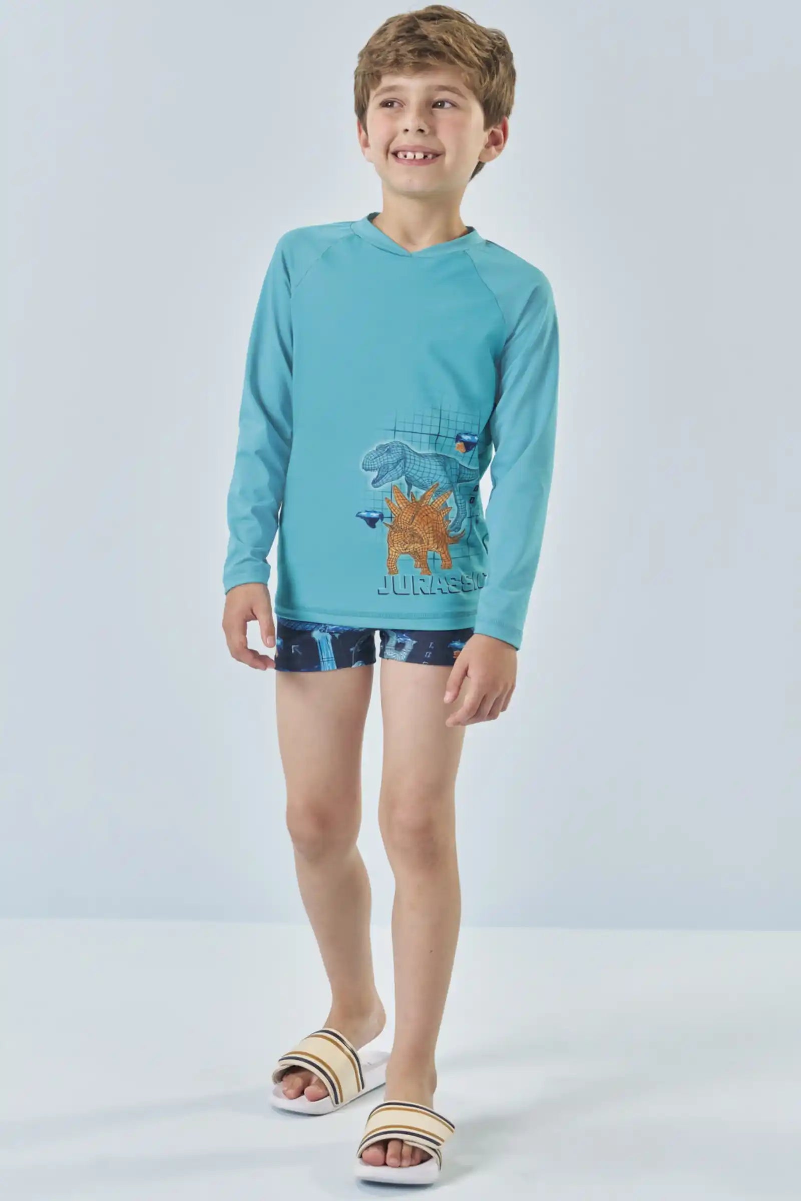 Protege a tu pequeño con estilo este verano con nuestro Set UV50 de Dinosaurios, confeccionado en Brasil con materiales de alta calidad y secado rápido. Incluye polera manga larga con protección solar UV50+ y short de baño estampado con dinosaurios en tonos vibrantes. Su tejido cómodo, suave y resistente al cloro lo hace ideal para playa, piscina y días de aventura.