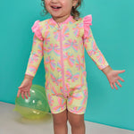 Fabricado con confección brasileña de alta calidad, ofrece elasticidad, secado rápido y un cierre frontal que facilita vestir y cambiar. Ideal para mamás y papás que buscan durabilidad, diseño y protección real, o para quienes quieren regalar un traje de baño funcional y adorable.