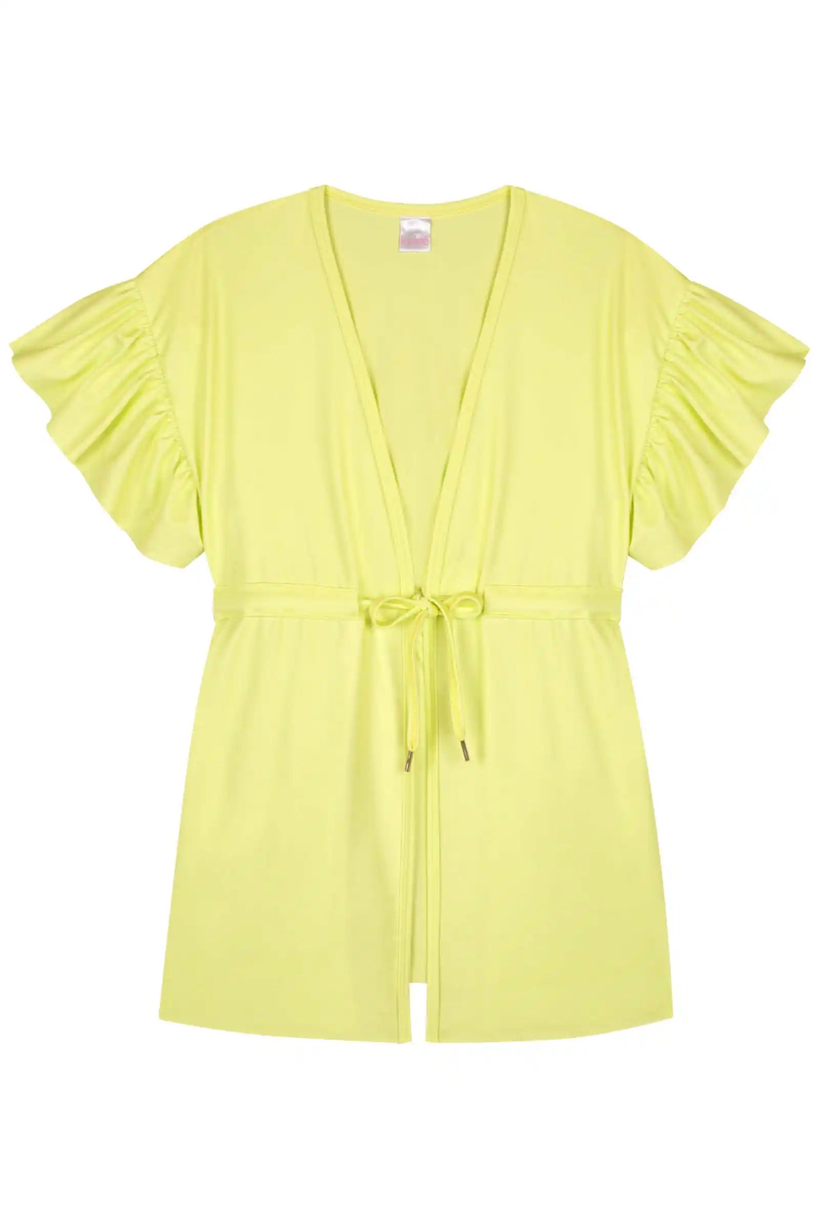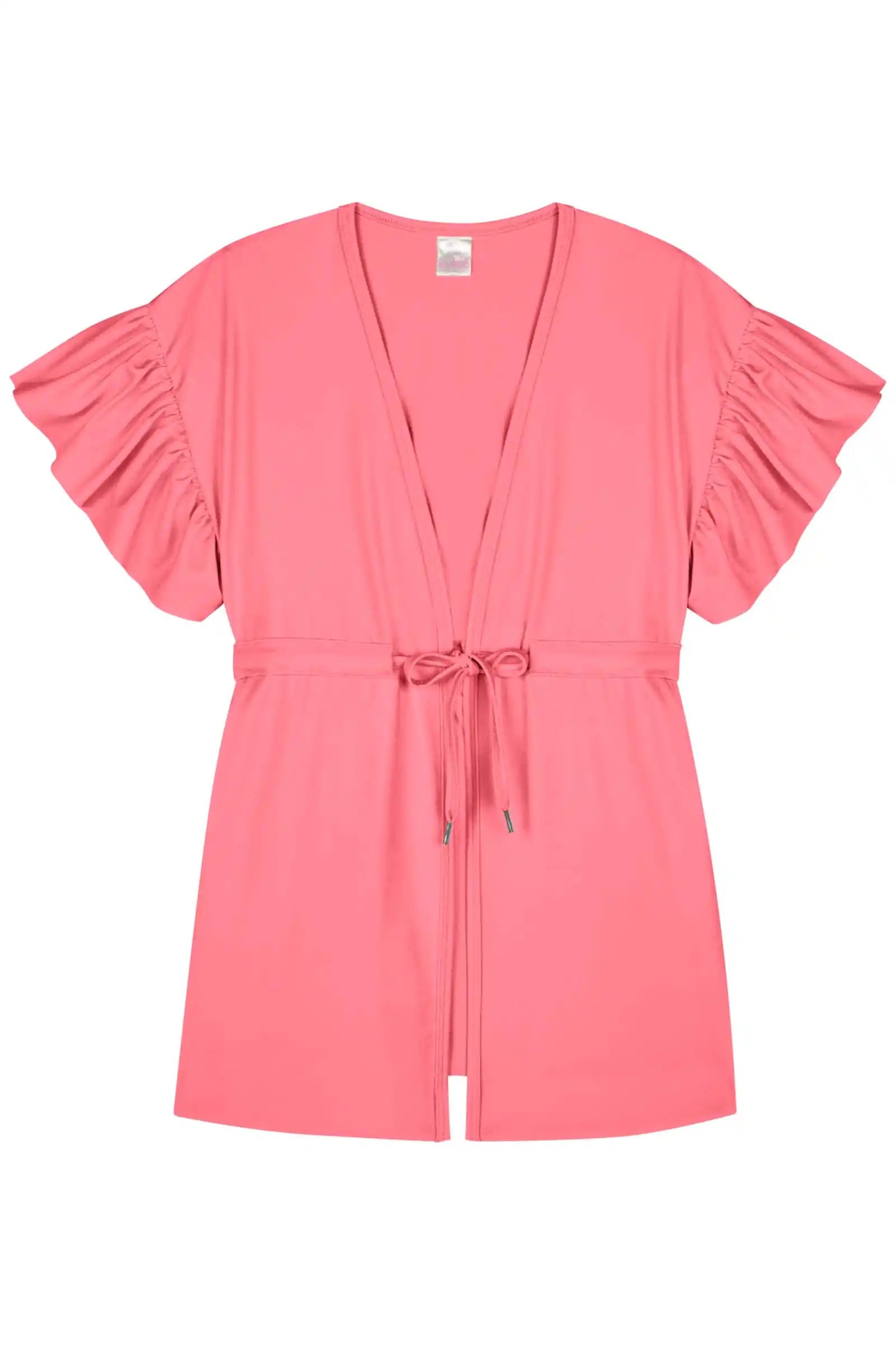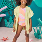 El Kimono Playa Volados es la salida perfecta para los días de sol. Ligero, fresco y con mangas con volados que le dan un toque adorable, este kimono acompaña a tu niña en piscina, playa o vacaciones.