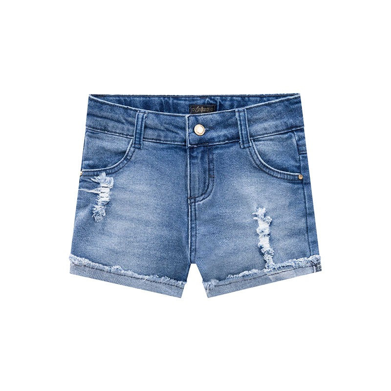 Short infantil de mezclilla con efecto desgastado y detalles rasgados, confeccionado en Brasil con materiales de alta calidad. Cuenta con cintura ajustable que garantiza un calce cómodo y perfecto para acompañar el crecimiento. Su diseño moderno y versátil lo convierte en una prenda imprescindible para cualquier look de verano o de uso diario.