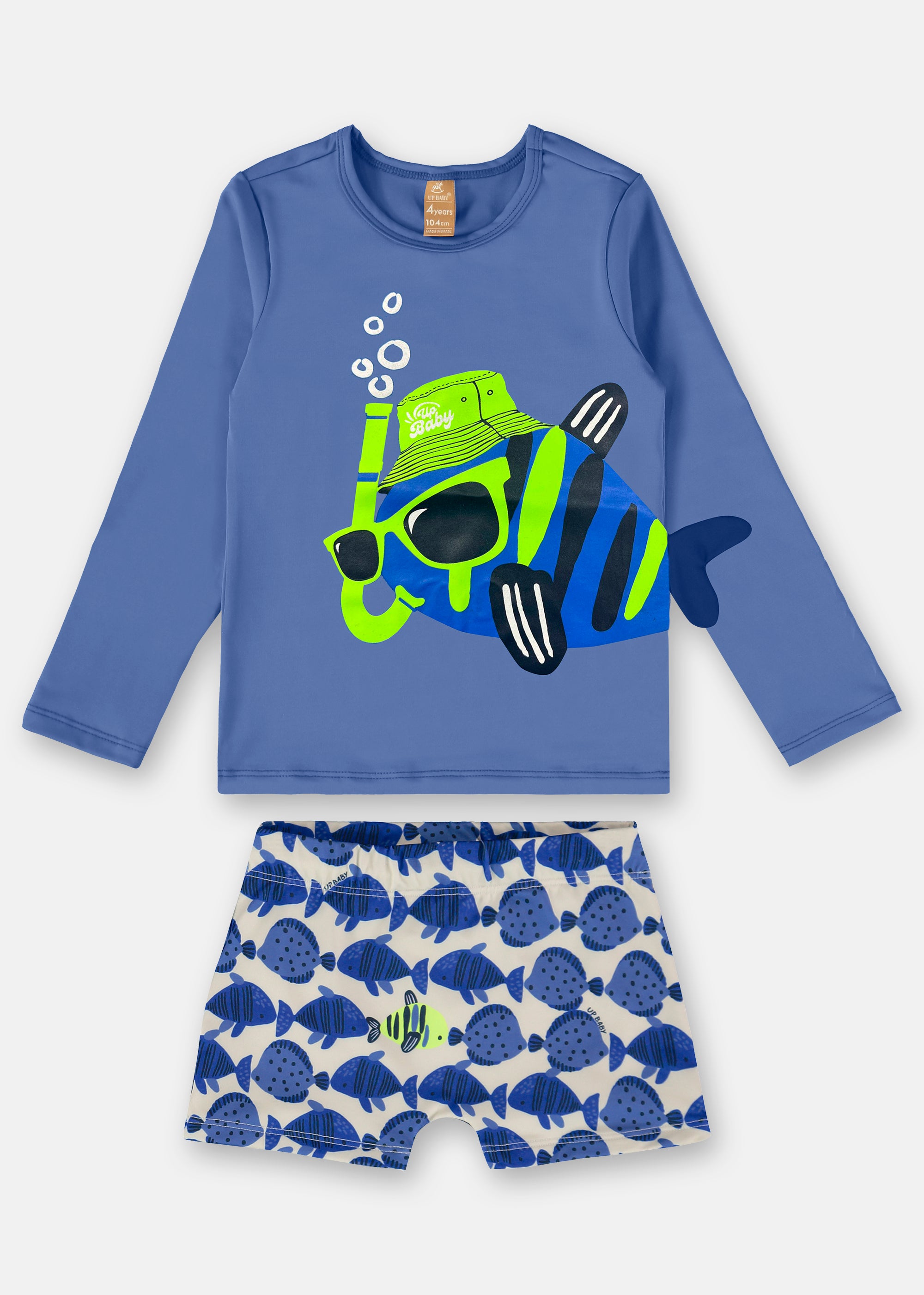Conjunto de Baño Niño Pez Snorkel Azul UV50+