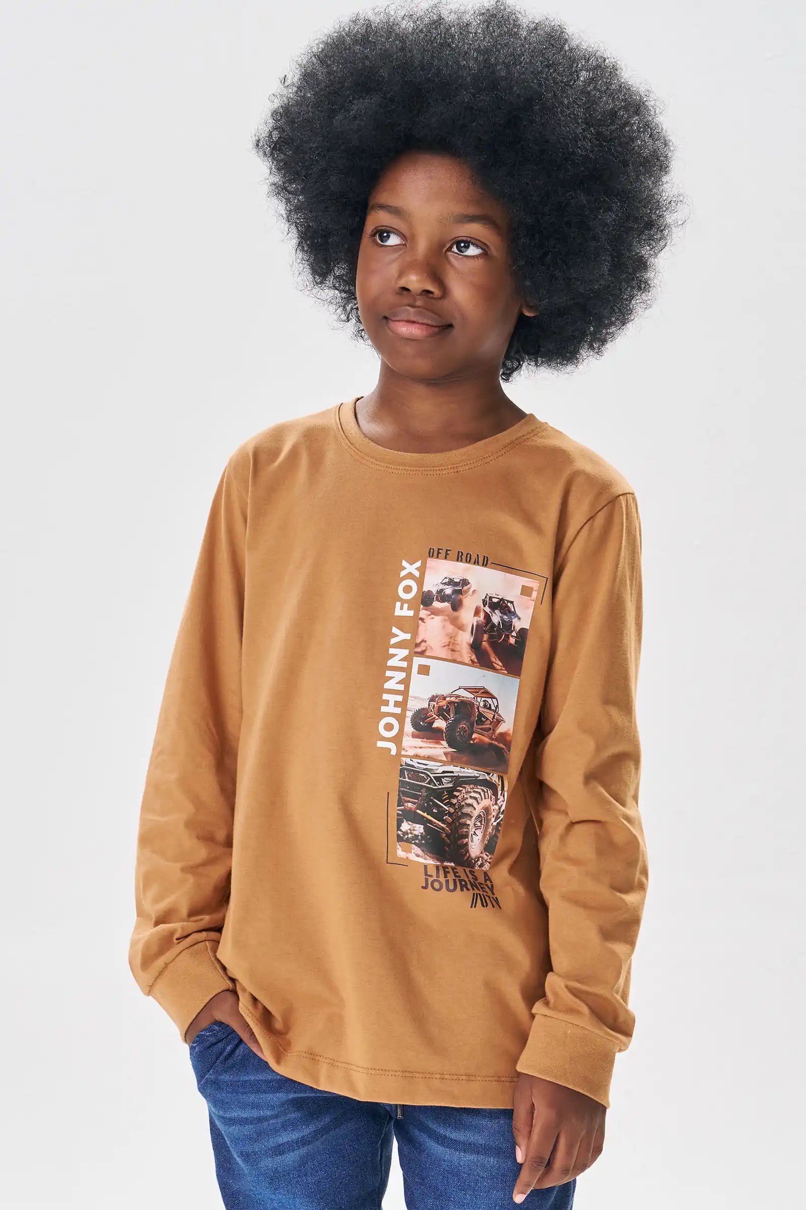 Polera manga larga de niño Johnny Fox, confeccionada en algodón brasileño de alta calidad. Su diseño en tonos tierra con estampado "Off Road" es ideal para los pequeños fanáticos de la aventura. Suave, cómoda y resistente para acompañarlos en sus días de juego y exploración. Perfecta para otoño e invierno, combina estilo urbano con la durabilidad que buscas.