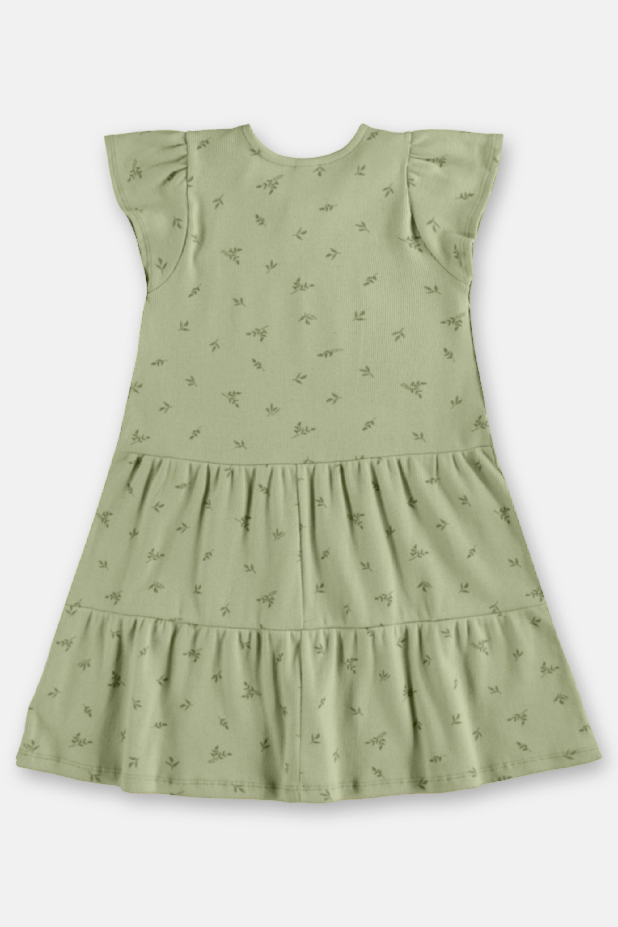 Vestido Infantil Volados Floral – Verde, Rosa y Blanco