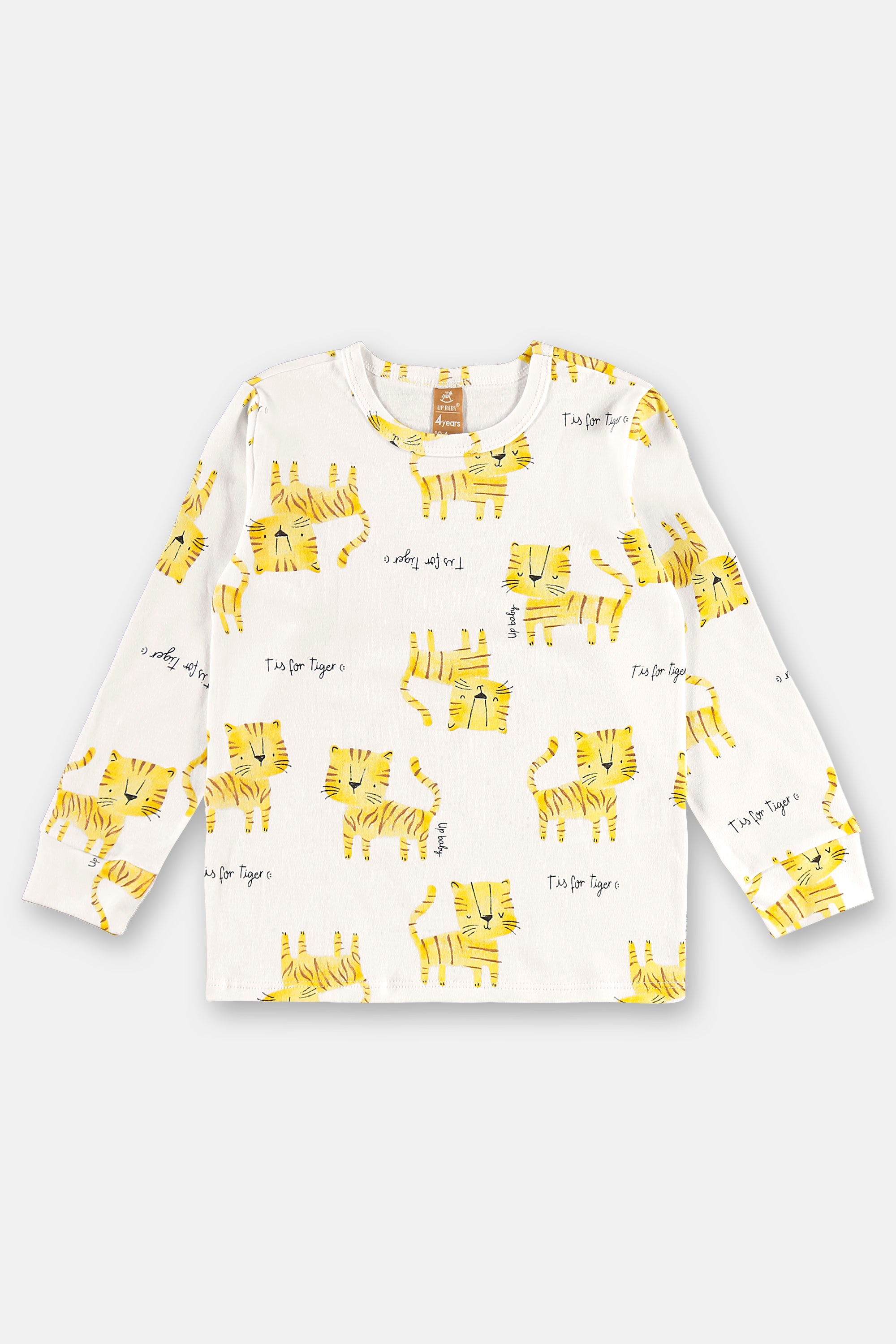 El Pijama Infantil Tigres – 100% Algodón de Ramba es ideal para noches cómodas y llenas de estilo. Confeccionado con suave algodón brasileño, su estampado alegre de tigres amarillos encanta a niños y papás por igual. Perfecto para la piel sensible, permite libertad de movimiento y acompaña a los pequeños desde los 3 hasta los 10 años. Dale a tu hijo un descanso reparador con calidad y diseño exclusivo.