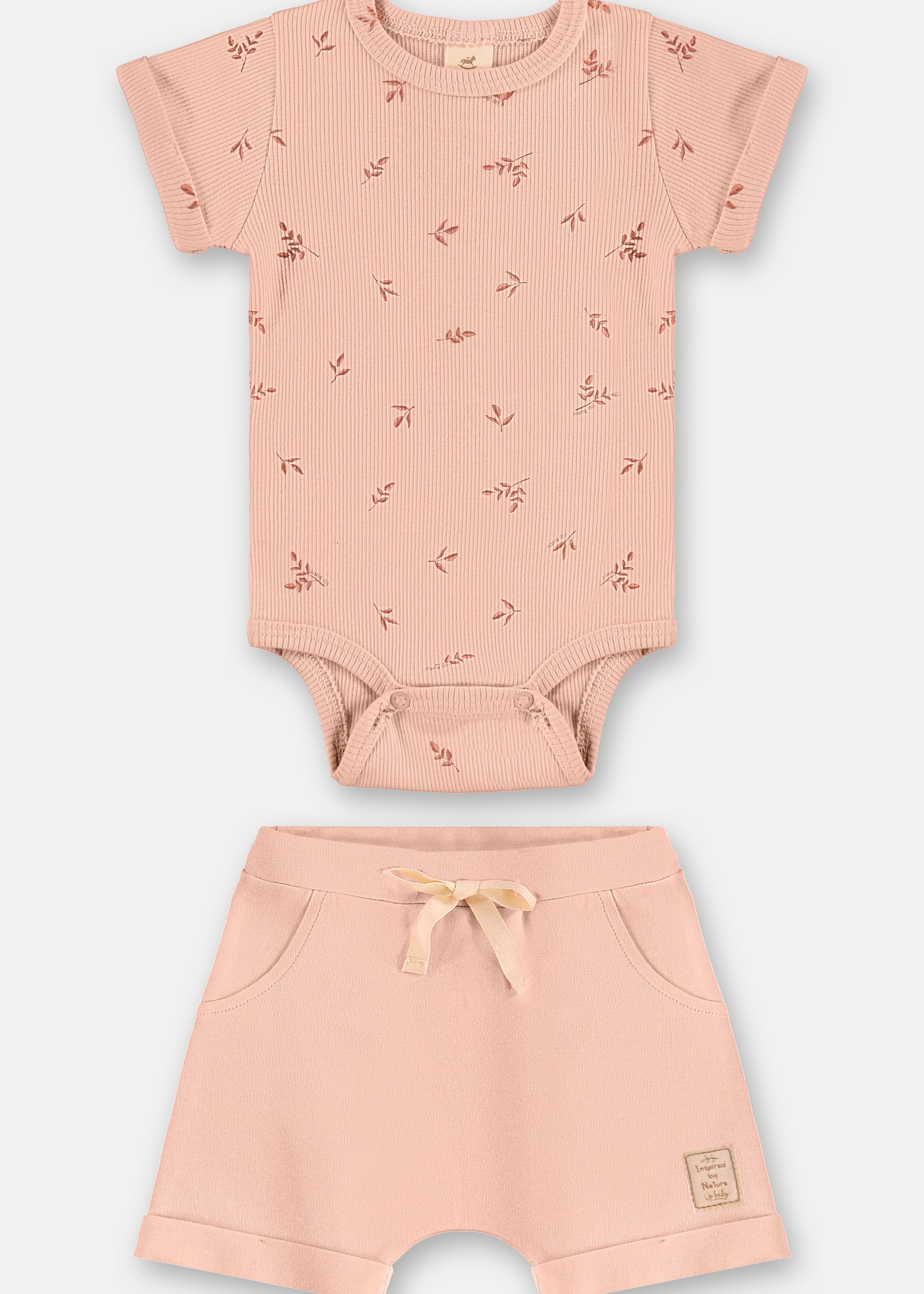 Conjunto Body y Short Rosa con Hojitas – 100% Algodón