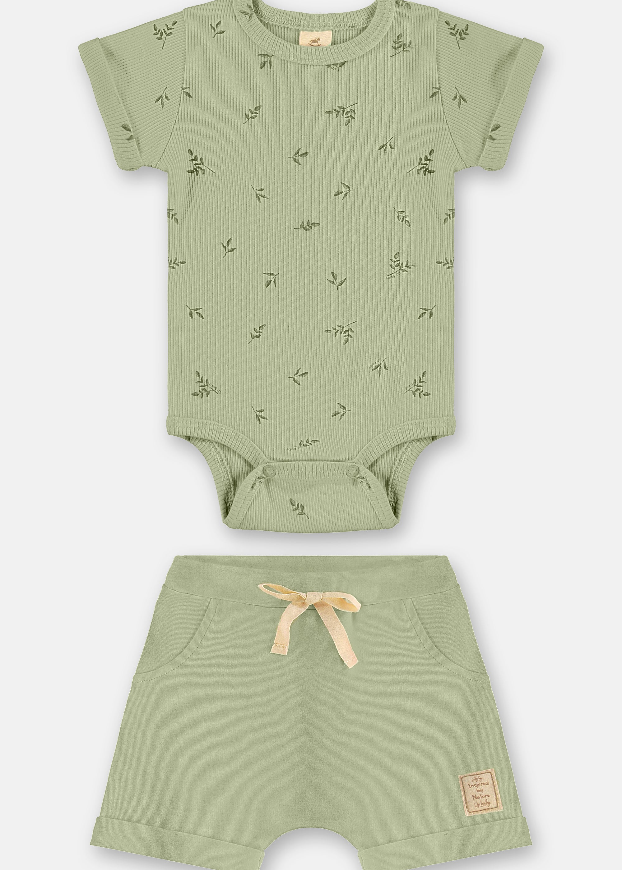 Conjunto Bebé Unisex Verde – Body y Short 100% Algodón