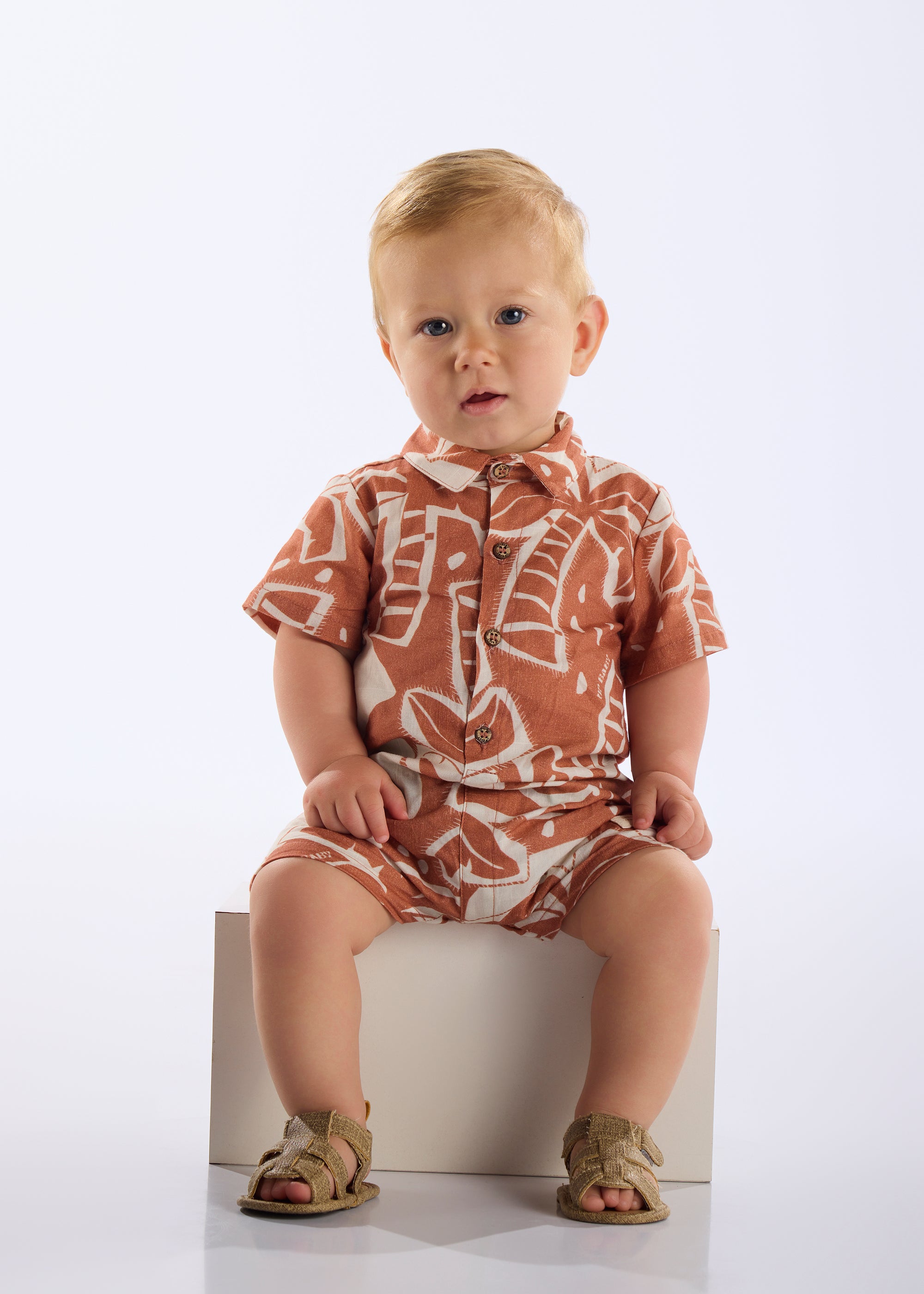 Conjunto Body y Short Blanco con Hojas – 100% Algodón