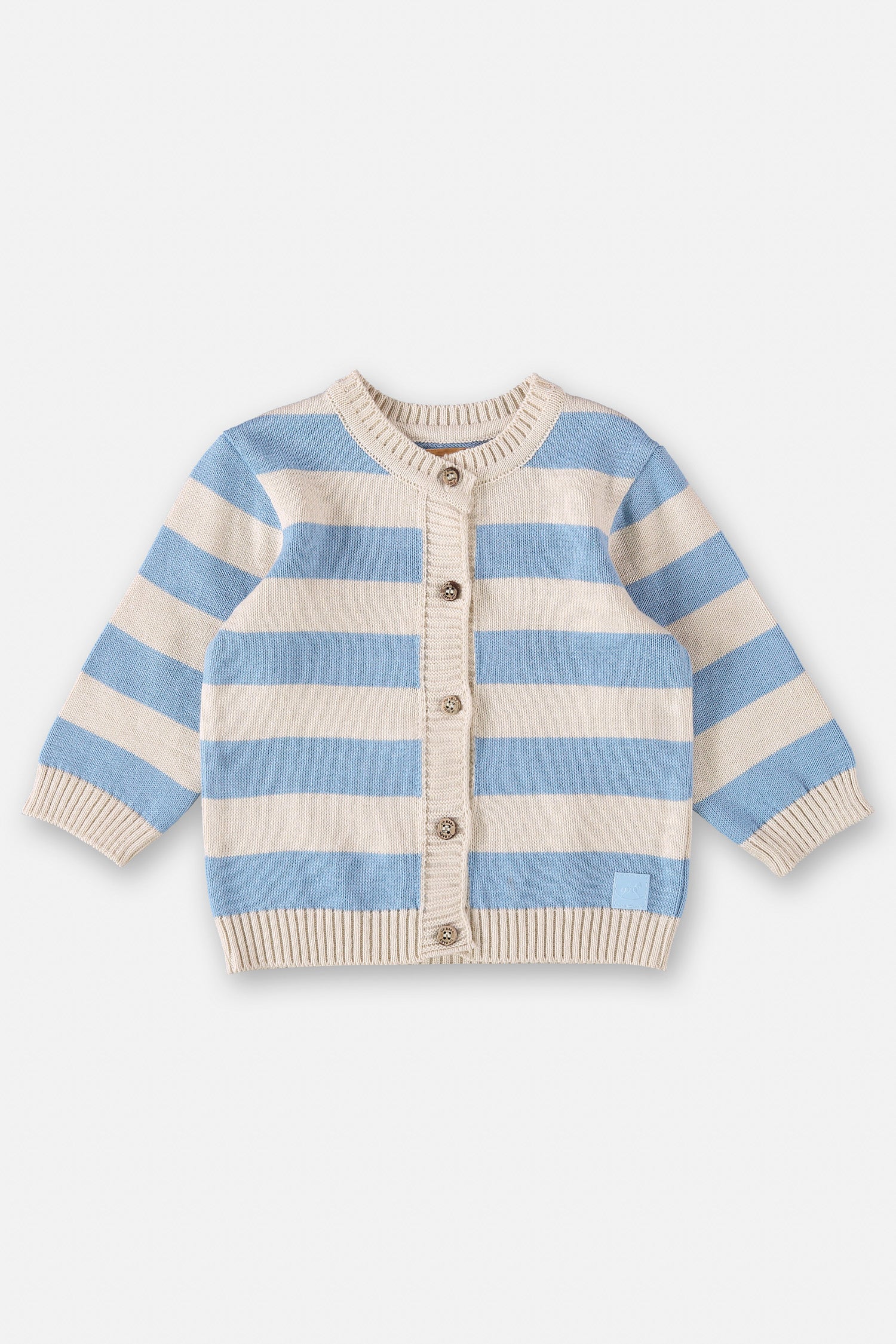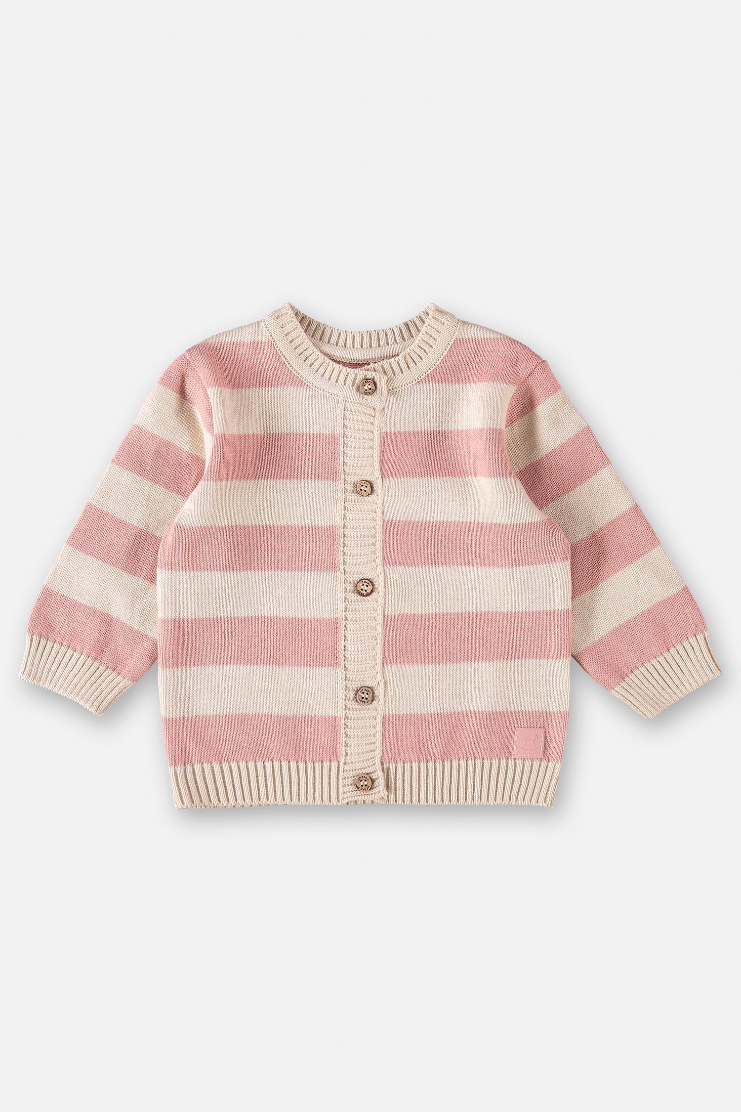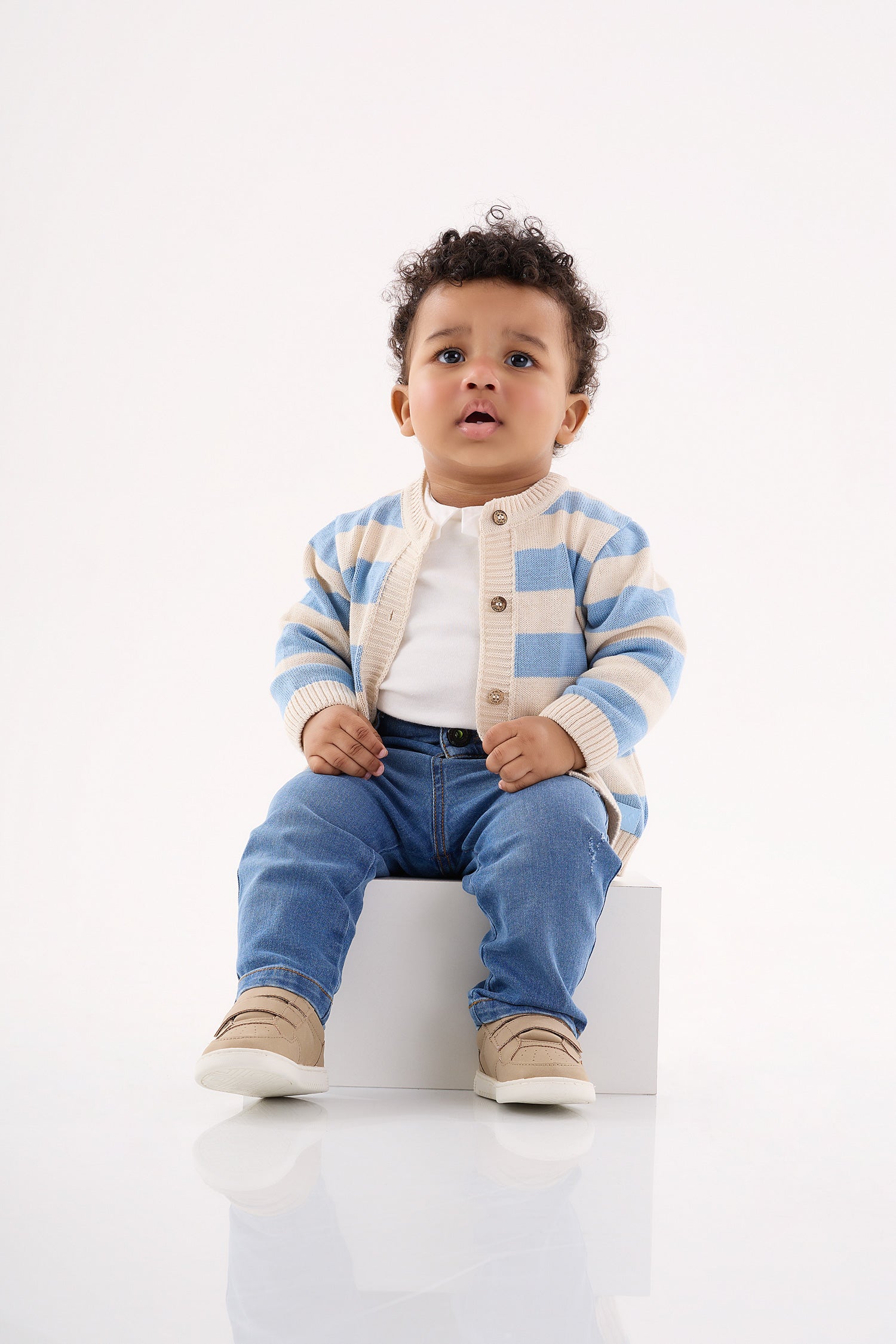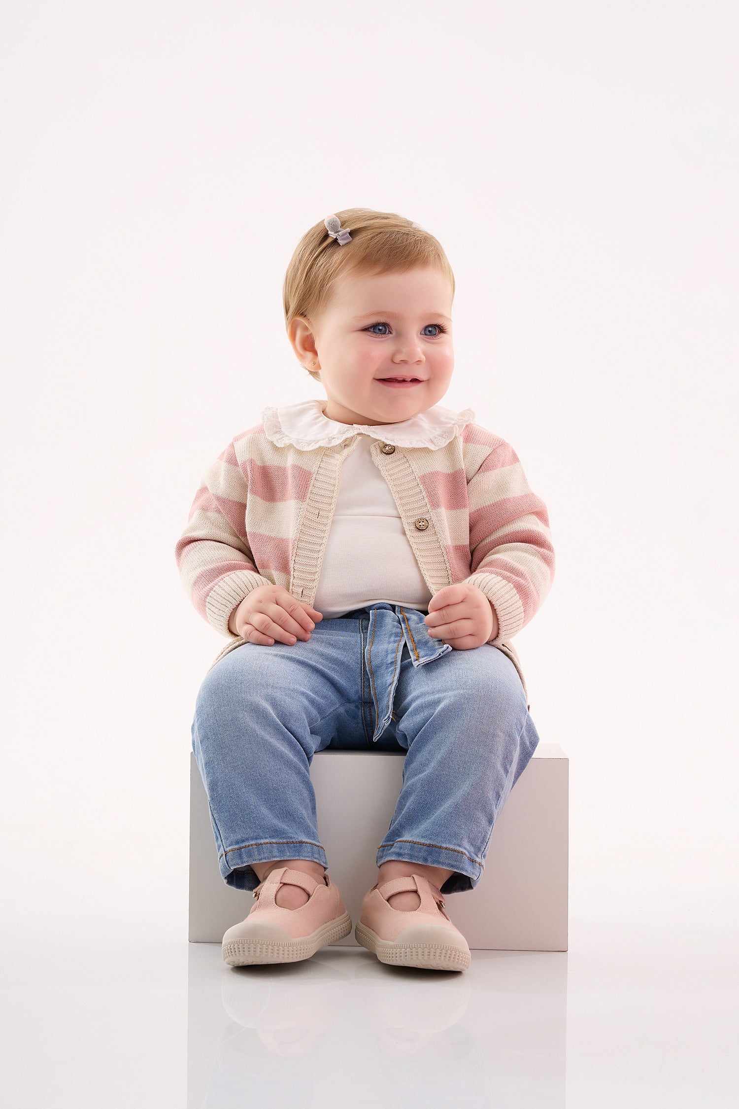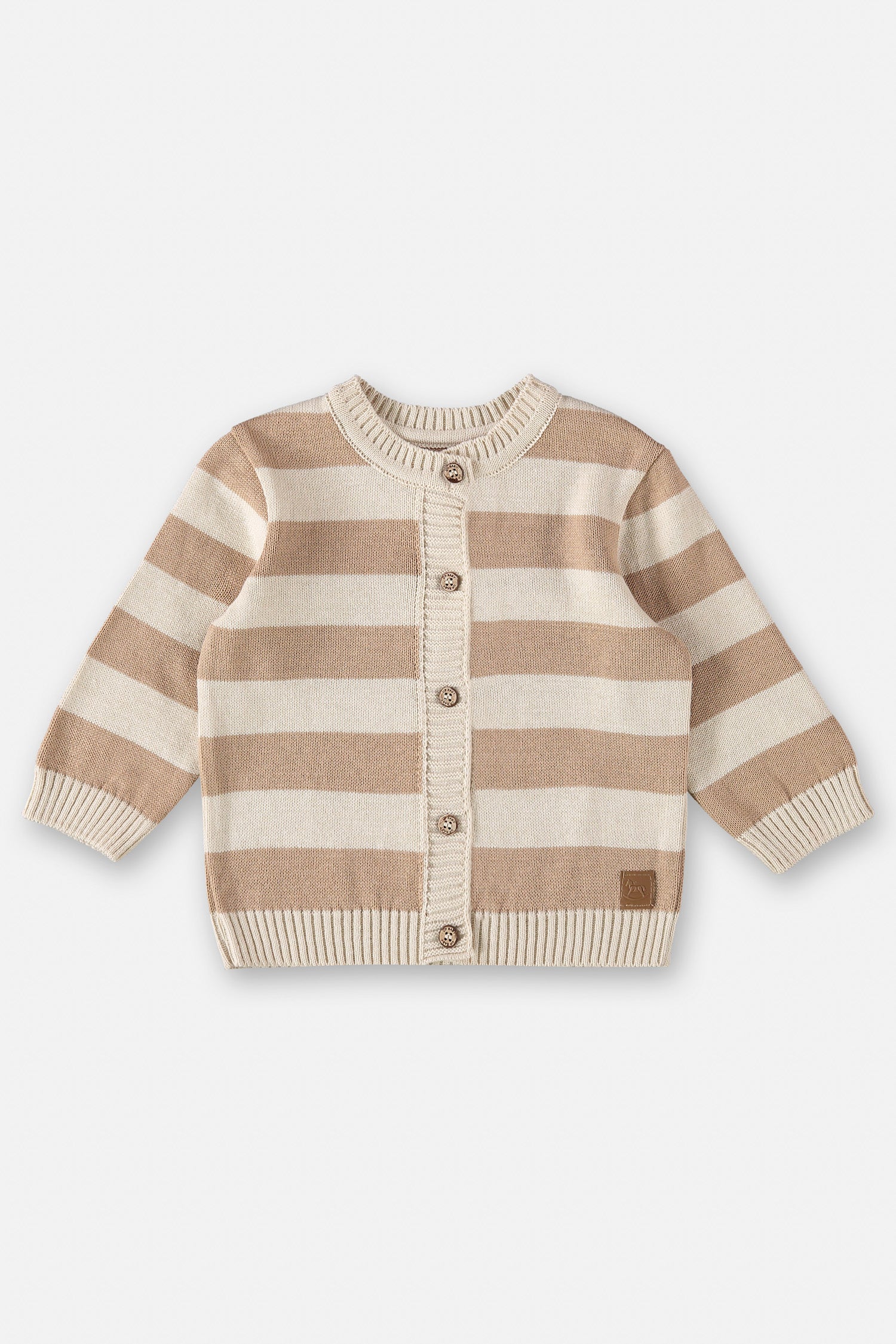 Este chaleco de hilo básico y atemporal con diseño de rayas en colores suaves es perfecto para mantener a tu bebé abrigado y con estilo durante las tardes más frescas. Confeccionado en un tejido suave y cálido, brindando la mayor comodidad. Su cierre de botones en la parte delantera facilita su postura, mientras que sus colores versátiles permiten combinarlo fácilmente con cualquier outfit. Disponible en varias tallas, este chalequito es una prenda esencial y funcional en el clóset de cualquier bebé.
