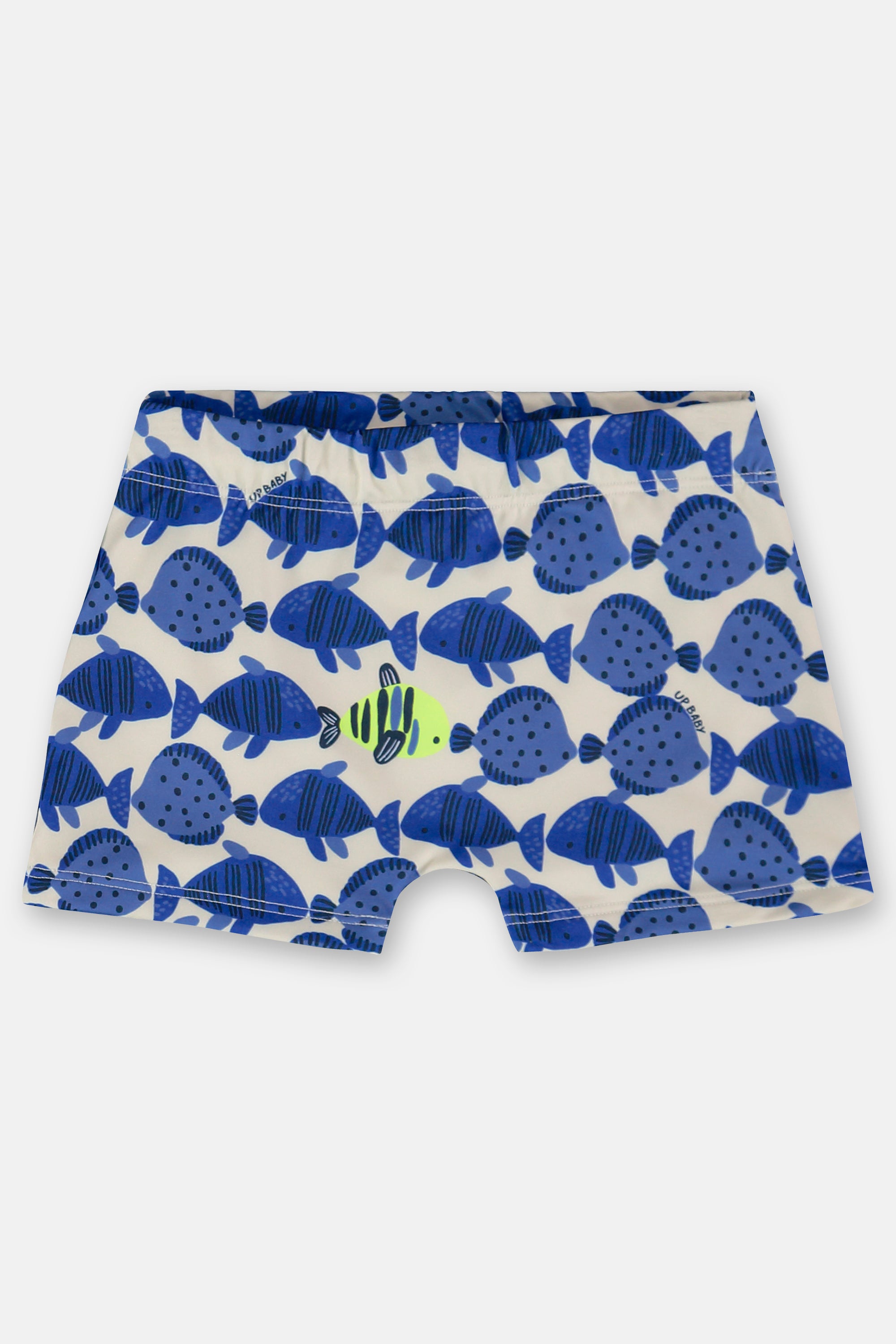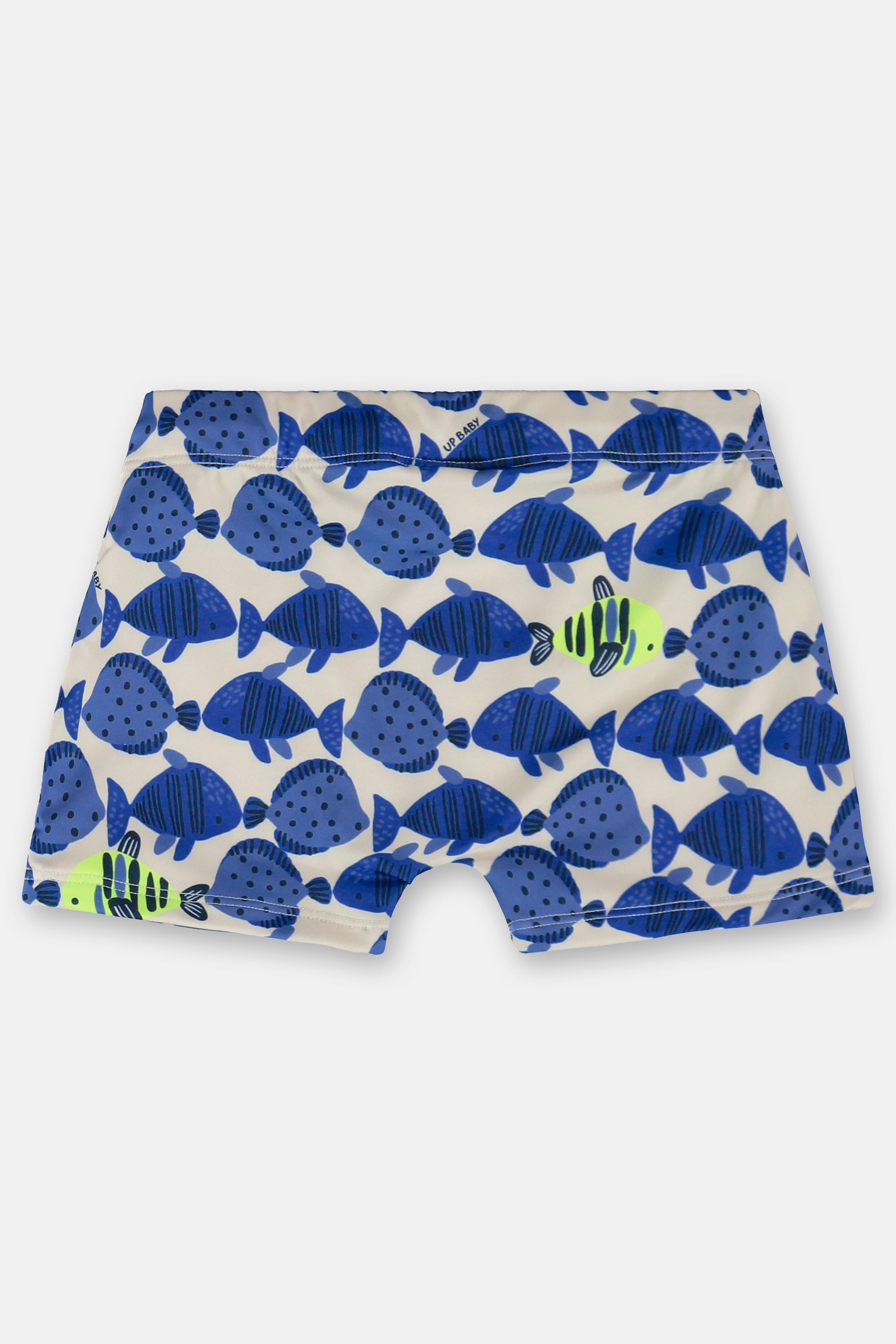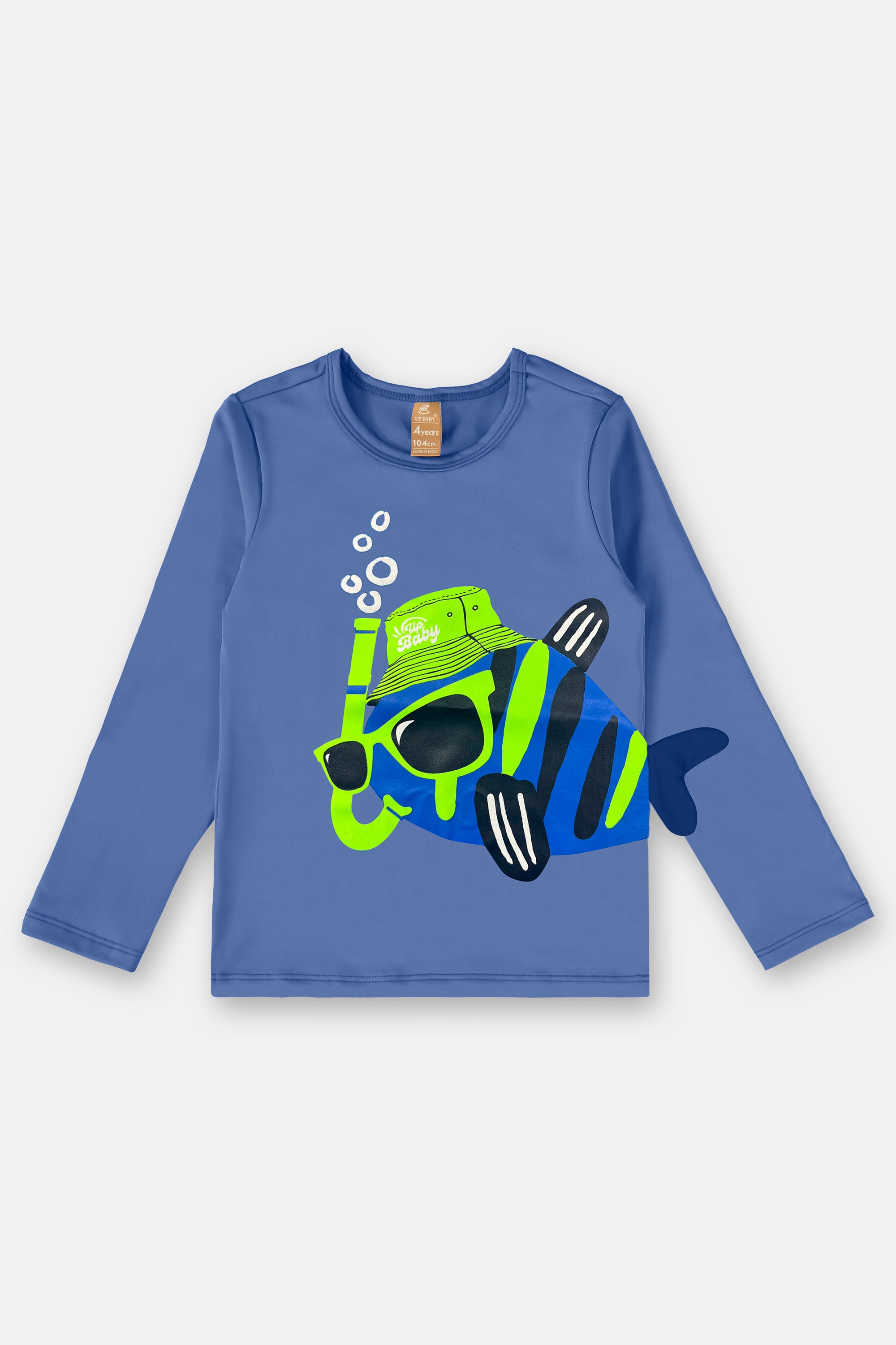 Conjunto de baño para niño con polera manga larga y short estampado de peces. Fabricado con tela con filtro UV50+ que protege contra los rayos solares. Diseño divertido y cómodo, ideal para disfrutar del verano con estilo y seguridad. Secado rápido y excelente ajuste para libertad de movimiento.