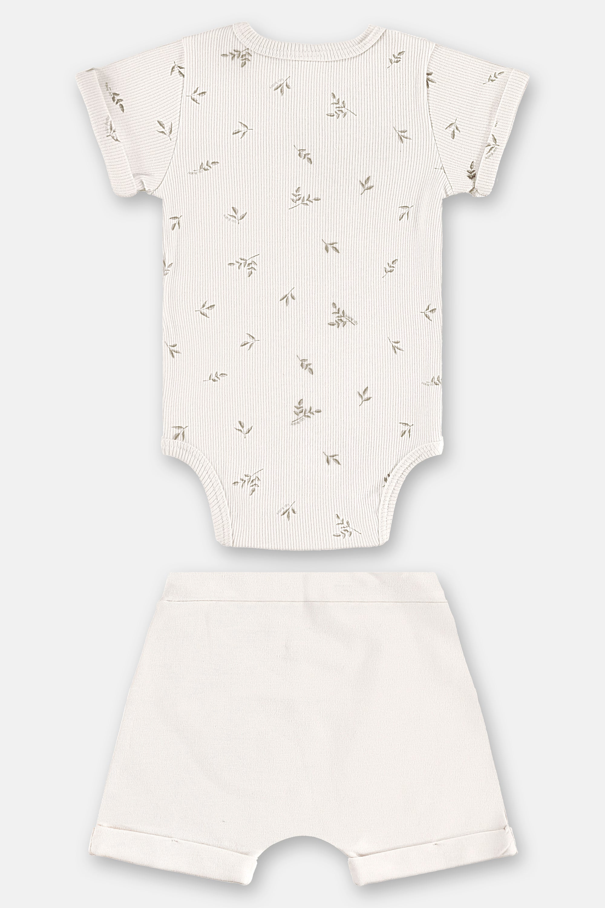 Conjunto Body y Short Blanco con Hojas – 100% Algodón