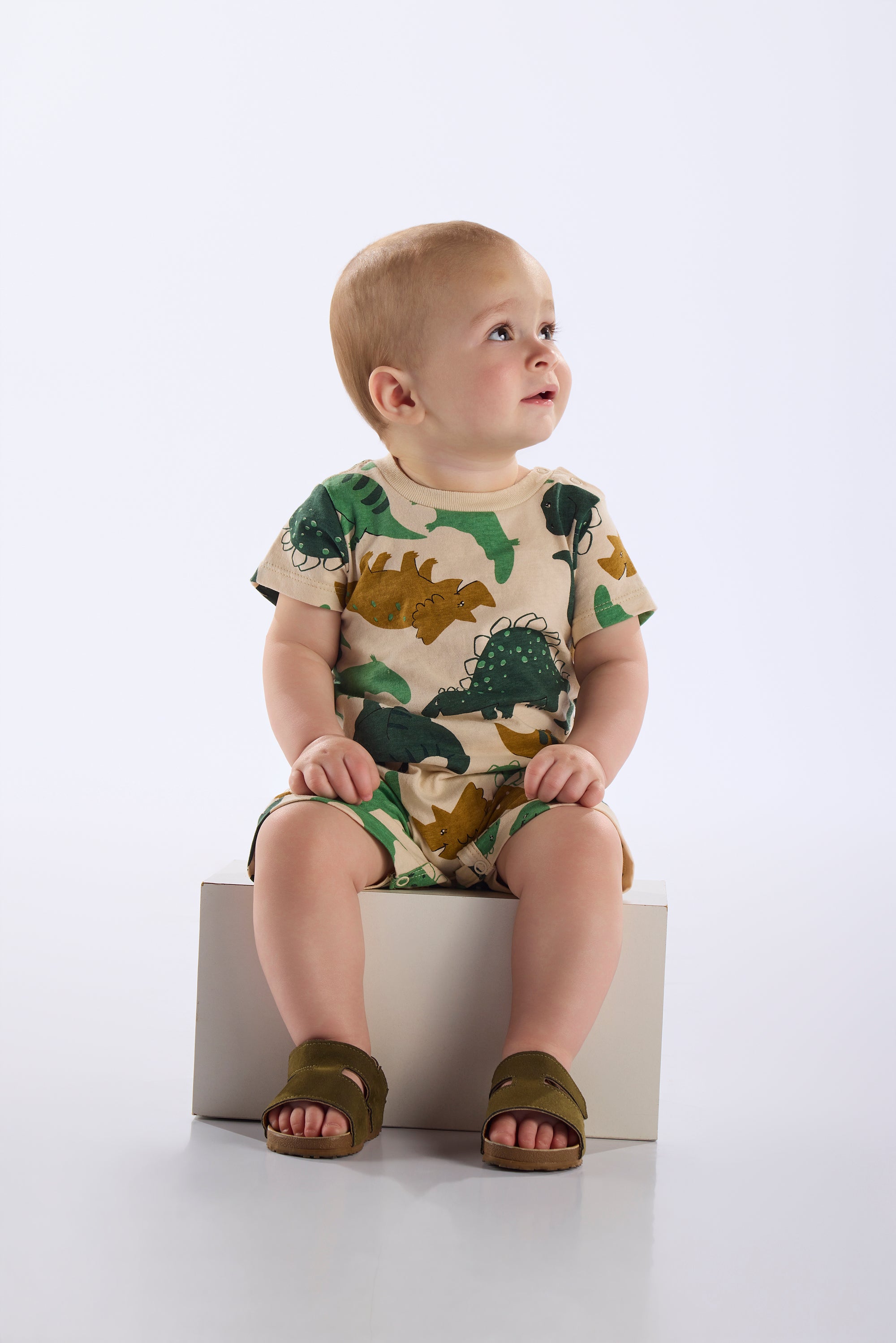 El Enterito Bebé Dinosaurios Divertidos está diseñado para acompañar a tu pequeño en sus primeros meses con estilo, comodidad y diversión. Disponible en dos variantes de color (dinosaurios verdes y dinosaurios azules), este enterito unisex de manga corta es ideal para el verano gracias a su confección en algodón brasileño de alta calidad, suave al tacto y delicado con la piel sensible del bebé.