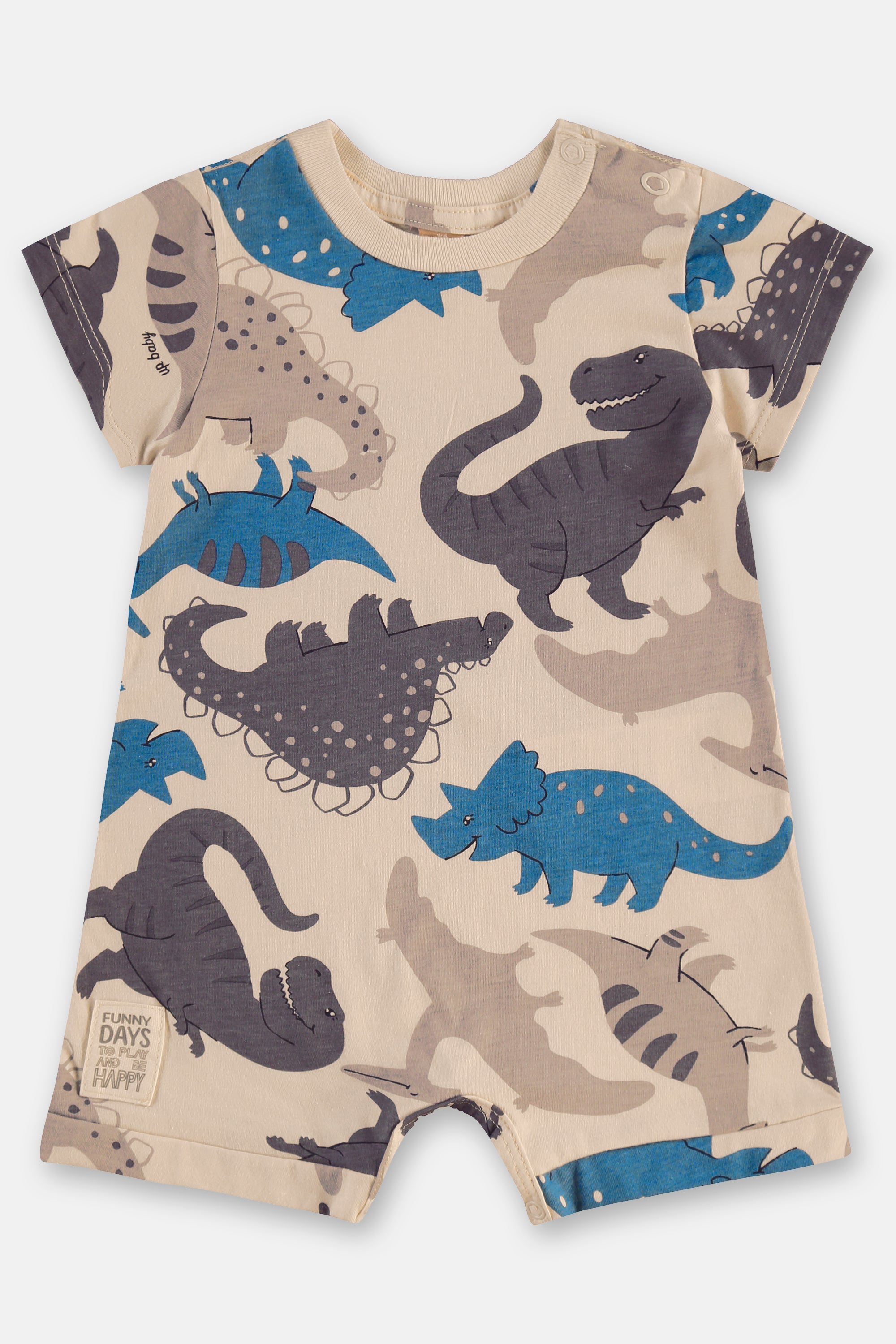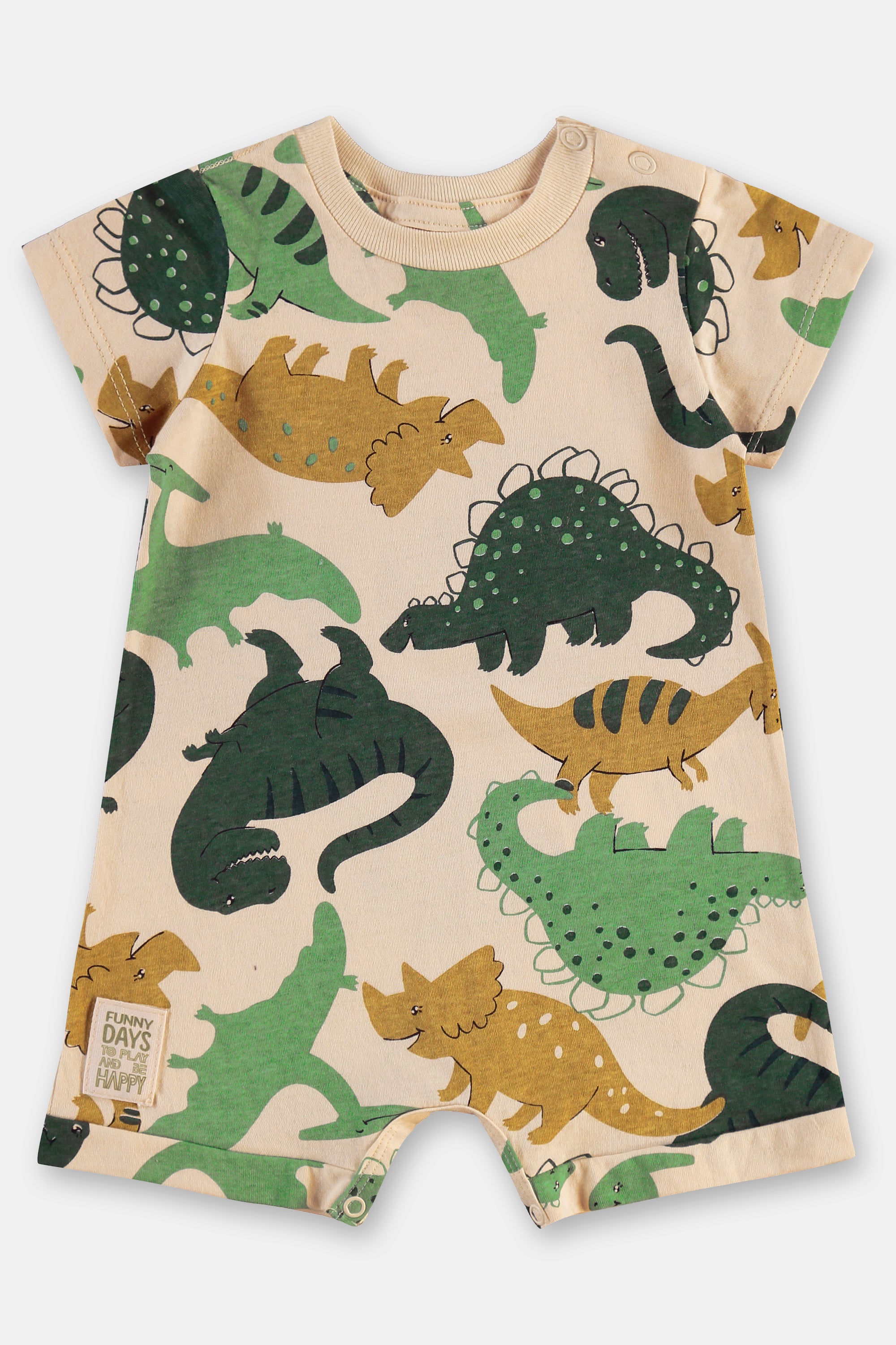 El diseño incluye prácticos broches en la entrepierna para facilitar el cambio de pañales y botones en el hombro que permiten vestir y desvestir al bebé con mayor comodidad. Su estampado alegre y lleno de dinosaurios convierte esta prenda en una opción entretenida y única, perfecta para el día a día, paseos o incluso como regalo para un recién nacido o baby shower.