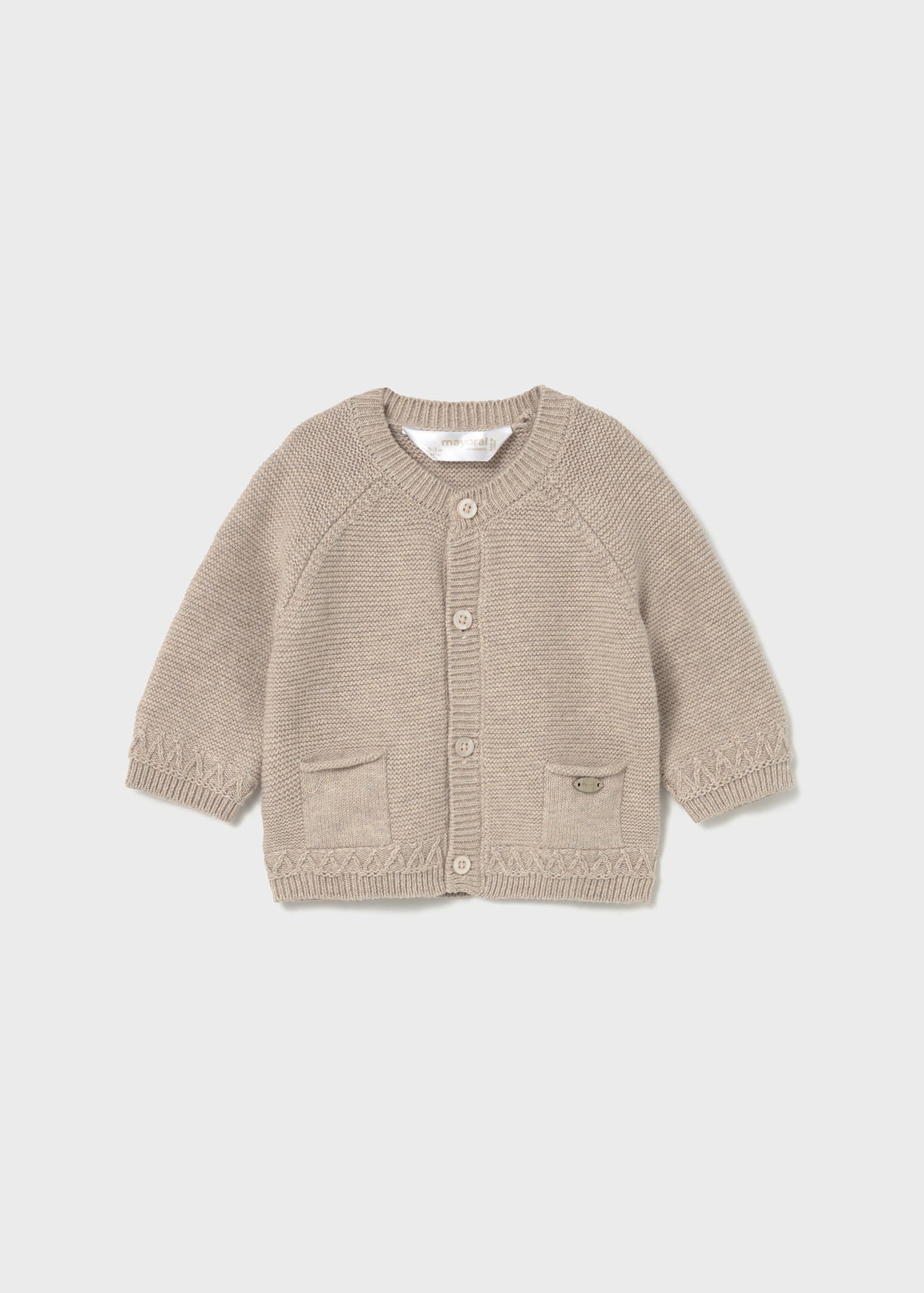 Cardigan Bebé Tejido Color Cereal Cuello Redondo