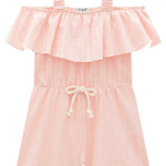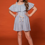 Este enterito Kukie es la combinación perfecta entre frescura y estilo para las tardes de verano. Confeccionado en algodón suave, presenta un diseño a rayas con delicado volante en el pecho y tirantes con fruncido elástico. Su ajuste cómodo con cintura elasticada y lazo le da un toque encantador y práctico. Disponible en tonos rosa o celeste, este enterito es ideal para looks casuales o salidas más arregladas. Fabricado en Brasil con materiales de alta calidad, pensado para acompañar con estilo y comodidad a tu niña en los días más cálidos.