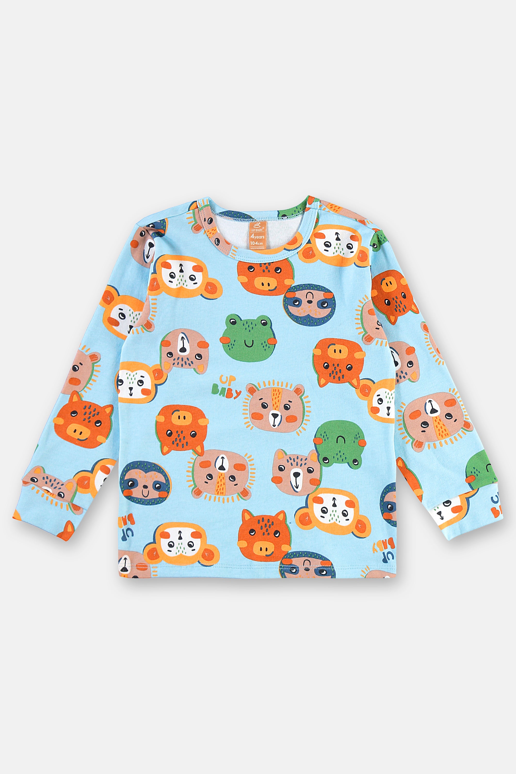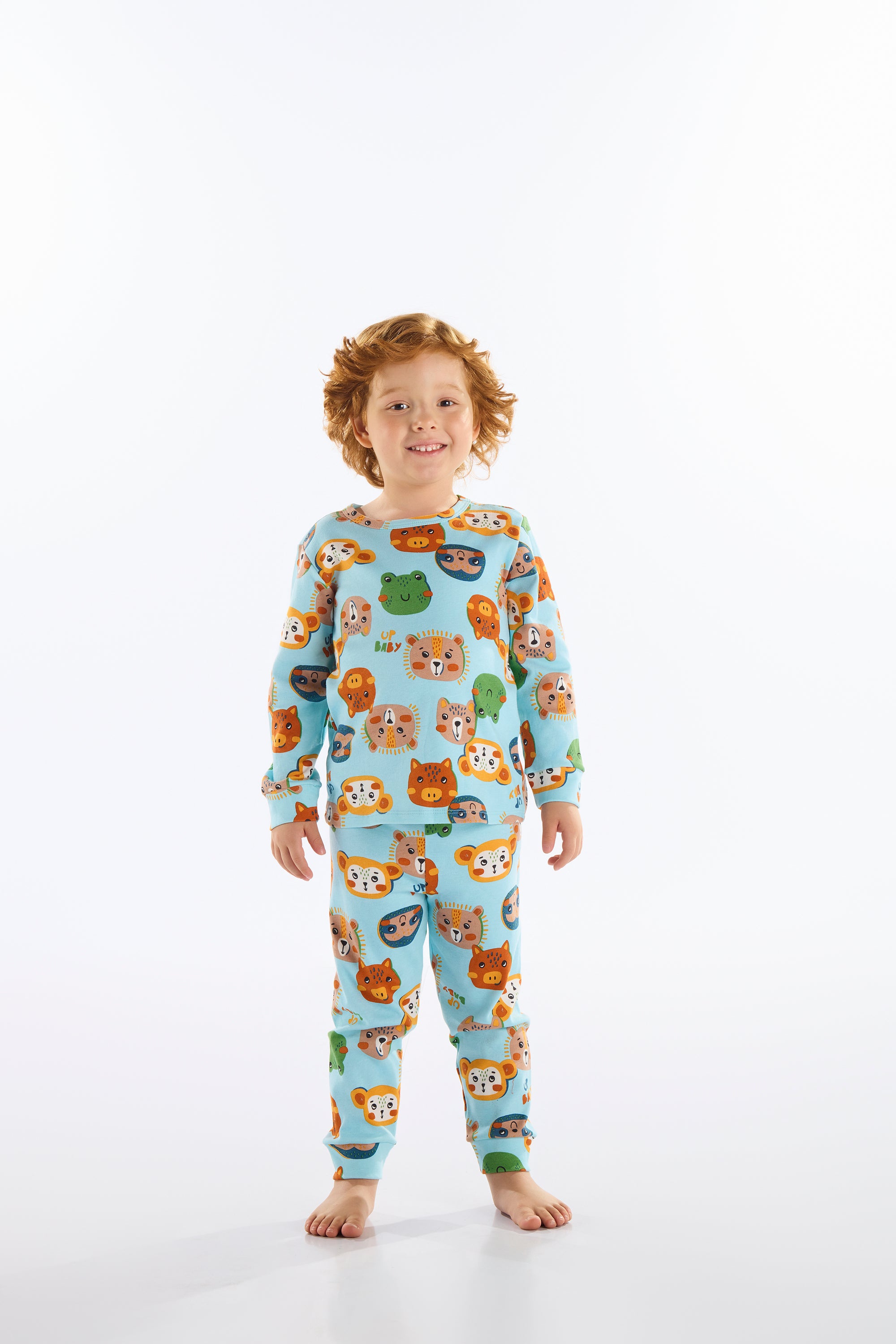 Pijama unisex para niños de dos piezas, confeccionado en 100% algodón brasileño, con estampado de animales del bosque en colores alegres. Suave, transpirable y cómodo, ideal para un sueño reparador o para estar en casa con estilo. Incluye polera de manga larga y pantalón con puños, pensado para acompañar a los pequeños desde los 3 hasta los 10 años. Perfecto para quienes buscan pijama algodón, pijama niños, y pijama 100% algodón que combine calidad, diseño y confort.